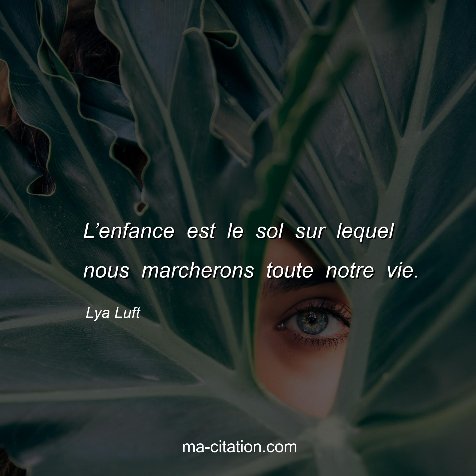 Lya Luft est l'auteur de la citation sur la vie "L’enfance est le sol sur lequel nous marcherons toute notre vie.".