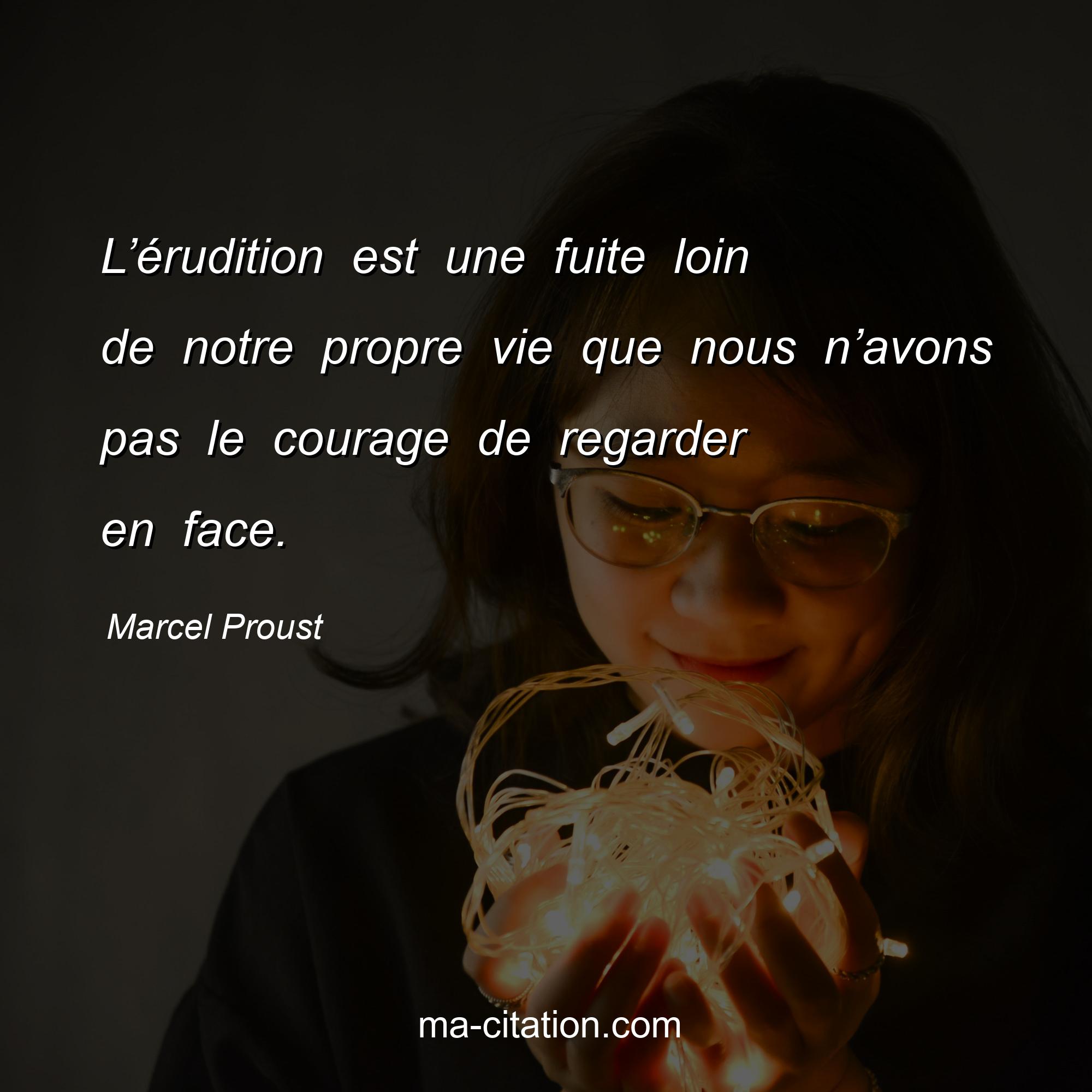 Marcel Proust est l'auteur de la citation sur la vie "L’érudition est une fuite loin de notre propre vie que nous n’avons pas le courage de regarder en face.".