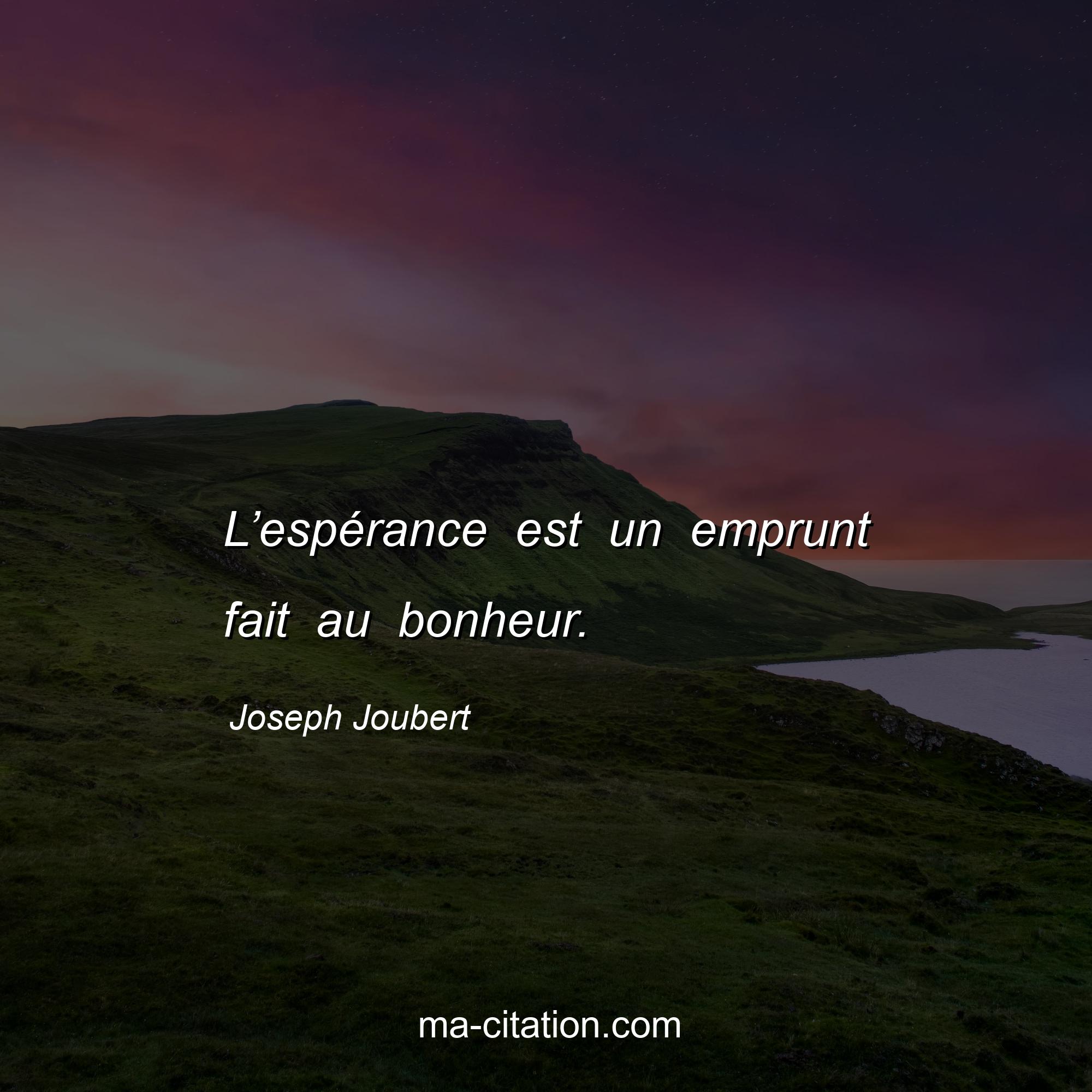 Citation sur la vie de Joseph Joubert :L’espérance est un emprunt fait au bonheur.