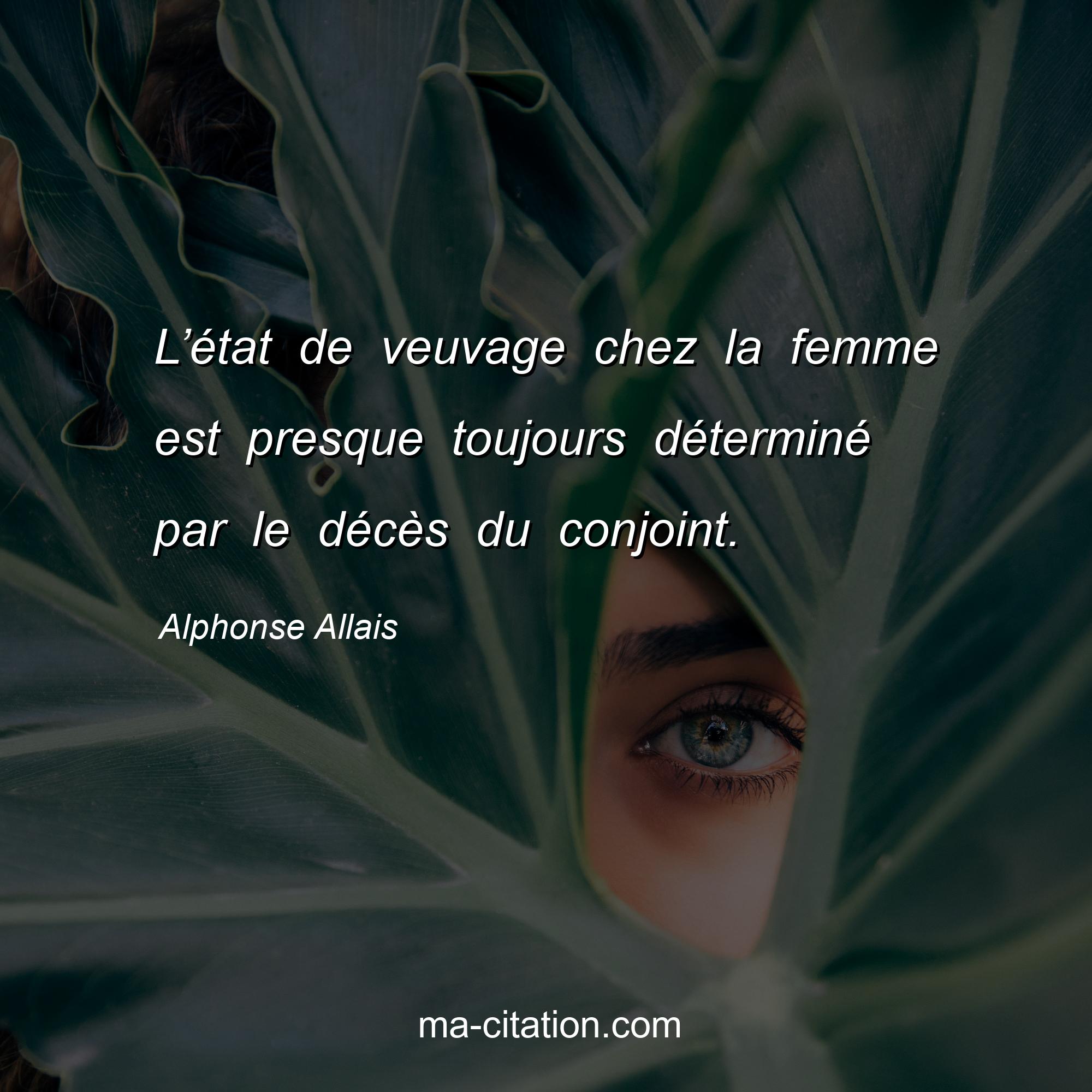 Citation sur la vie d'Alphonse Allais :L’état de veuvage chez la femme est presque toujours déterminé par le décès du conjoint.