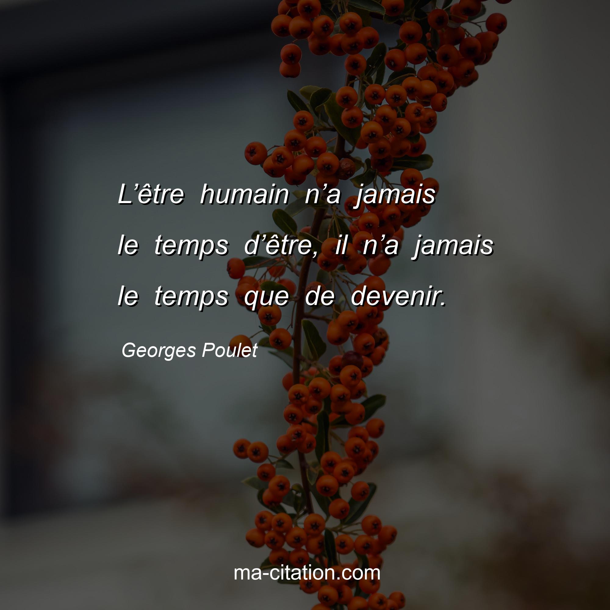 Citation sur la vie de Georges Poulet :L’être humain n’a jamais le temps d’être, il n’a jamais le temps que de devenir.