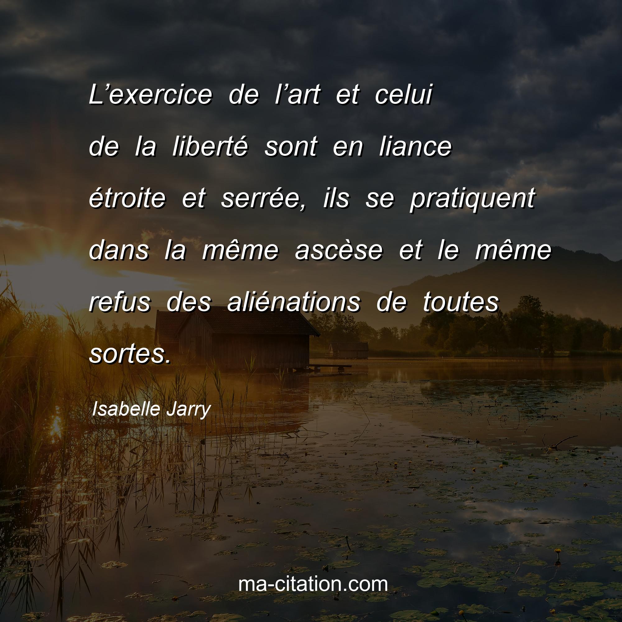 Citation sur la vie d'Isabelle Jarry :L’exercice de l’art et celui de la liberté sont en liance étroite et serrée, ils se pratiquent dans la même ascèse et le même refus des aliénations de toutes sortes.