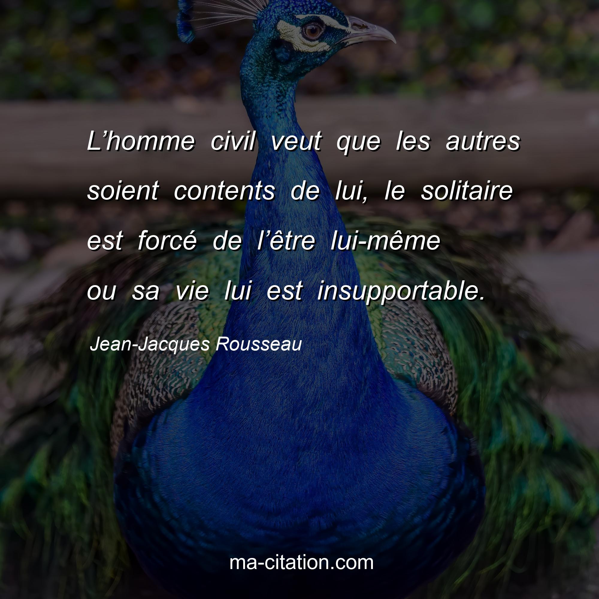 Citation sur la vie de Jean-Jacques Rousseau :L’homme civil veut que les autres soient contents de lui, le solitaire est forcé de l’être lui-même ou sa vie lui est insupportable.