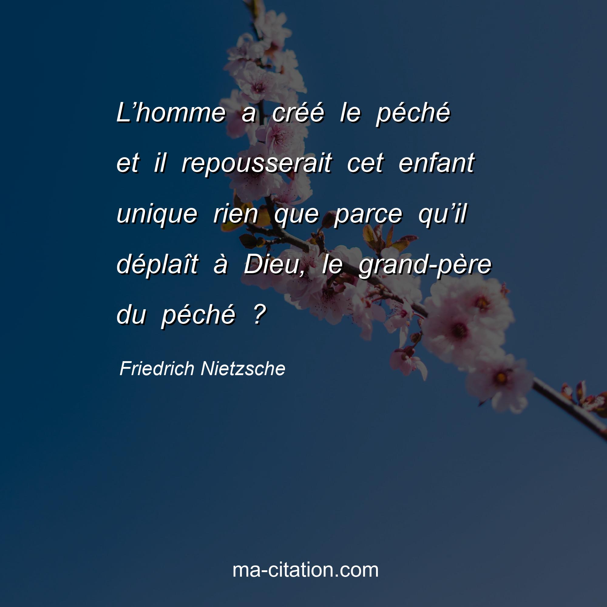 Citation sur la vie de Friedrich Nietzsche :L’homme a créé le péché et il repousserait cet enfant unique rien que parce qu’il déplaît à Dieu, le grand-père du péché ?