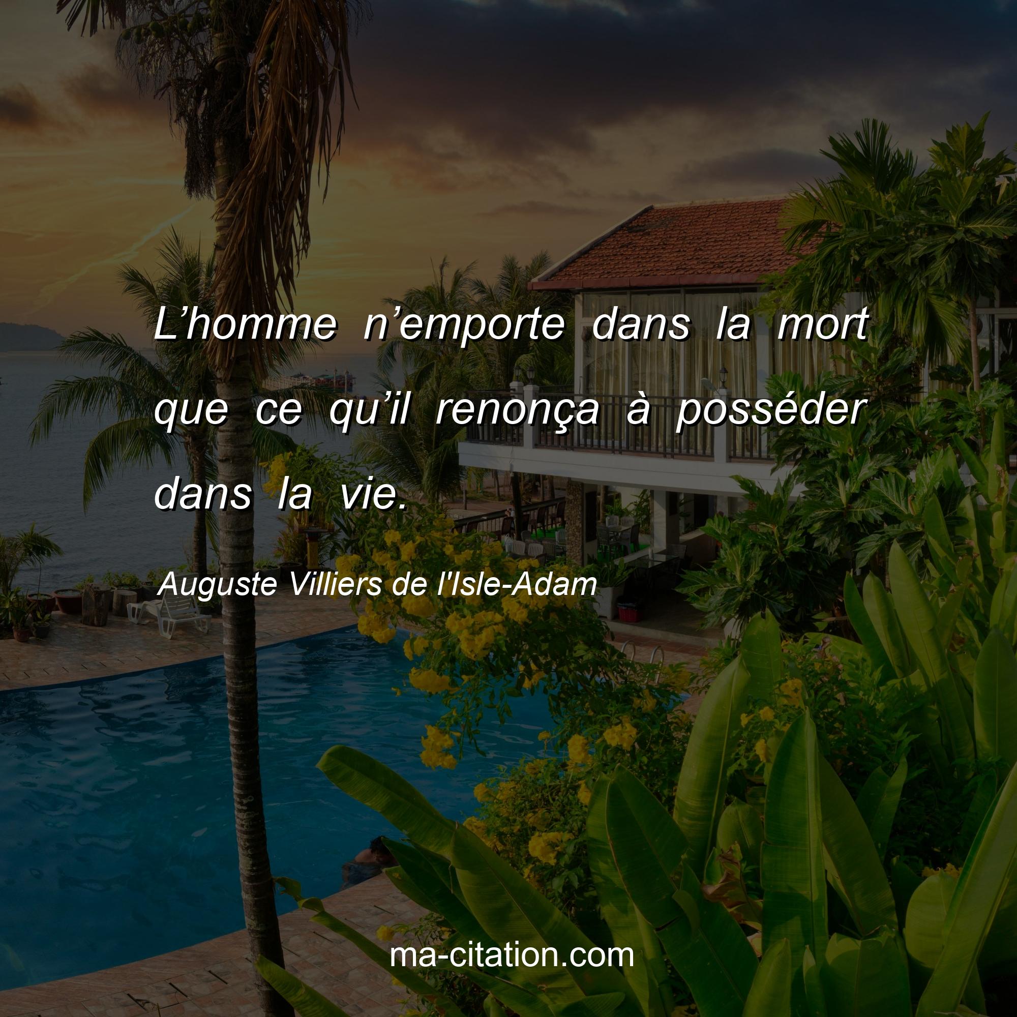 Auguste Villiers de l'Isle-Adam est l'auteur de la citation sur la vie "L’homme n’emporte dans la mort que ce qu’il renonça à posséder dans la vie.".