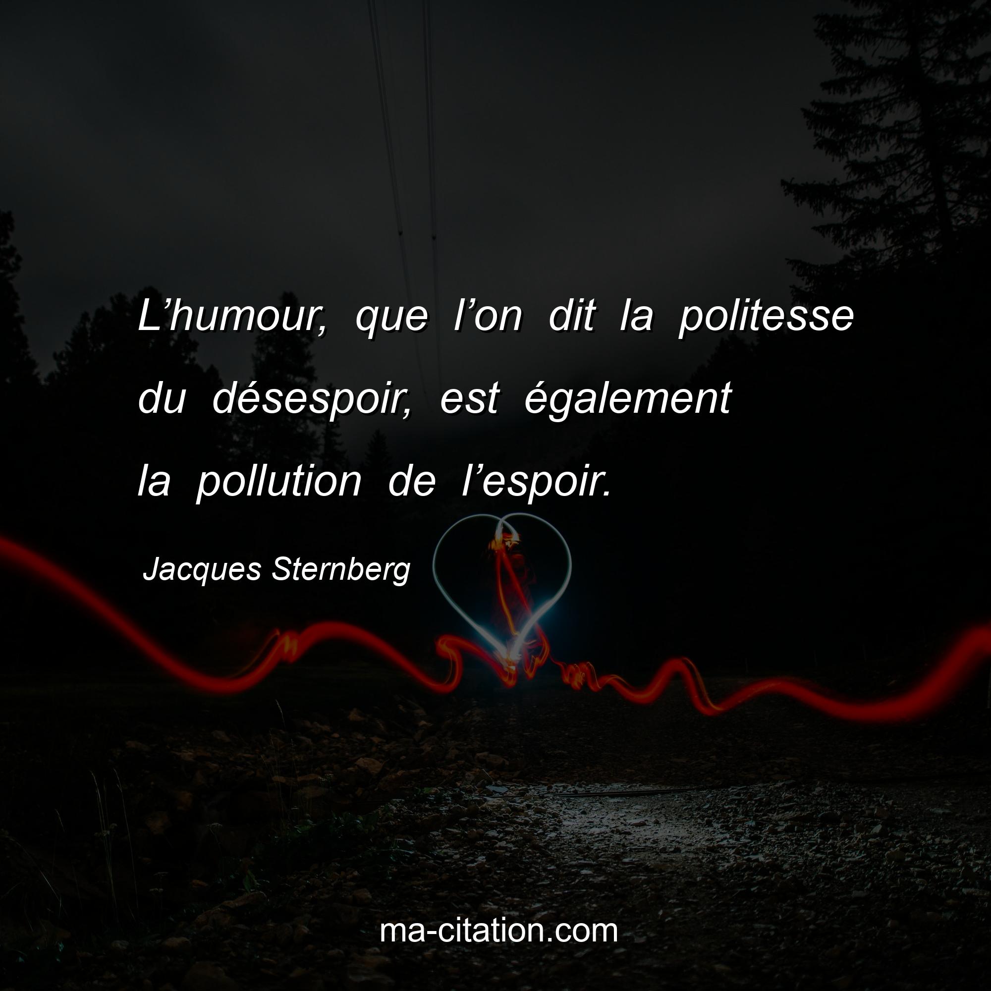 Citation sur la vie de Jacques Sternberg :L’humour, que l’on dit la politesse du désespoir, est également la pollution de l’espoir.