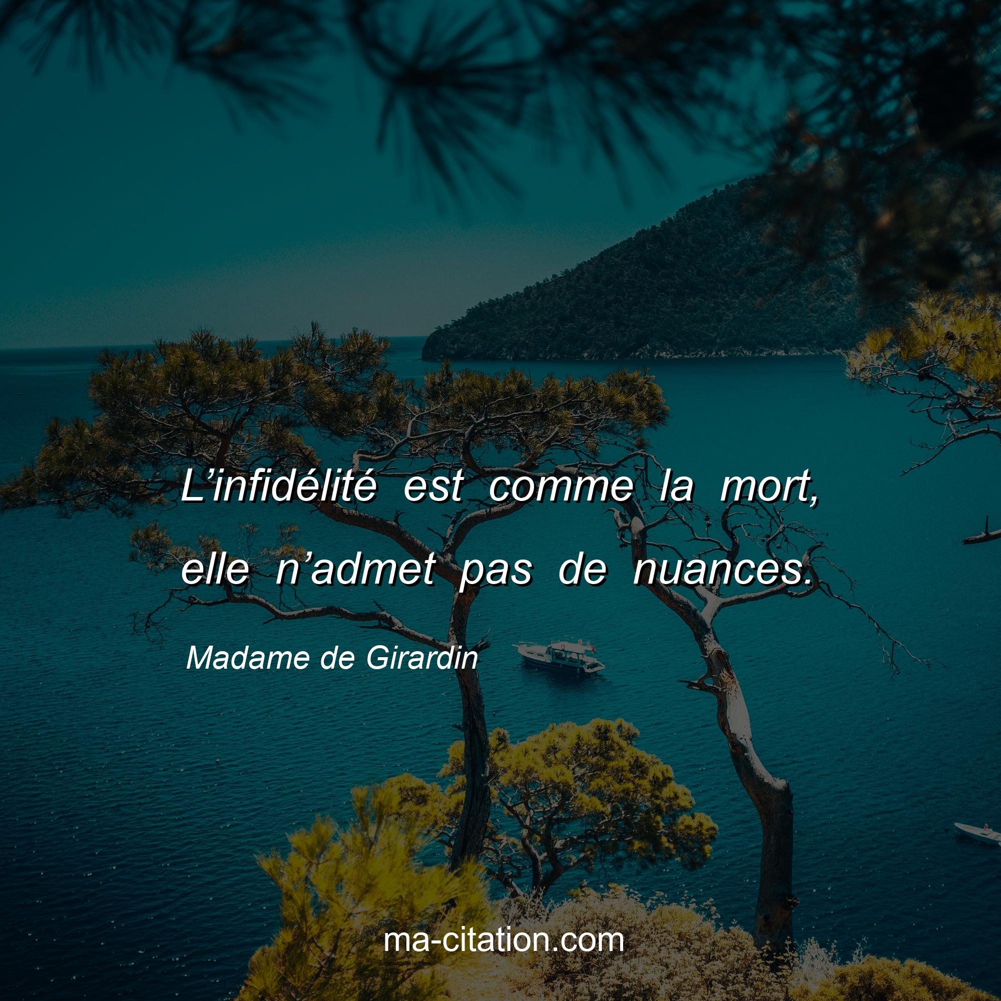 Citation sur la vie de Madame de Girardin :L’infidélité est comme la mort, elle n’admet pas de nuances.