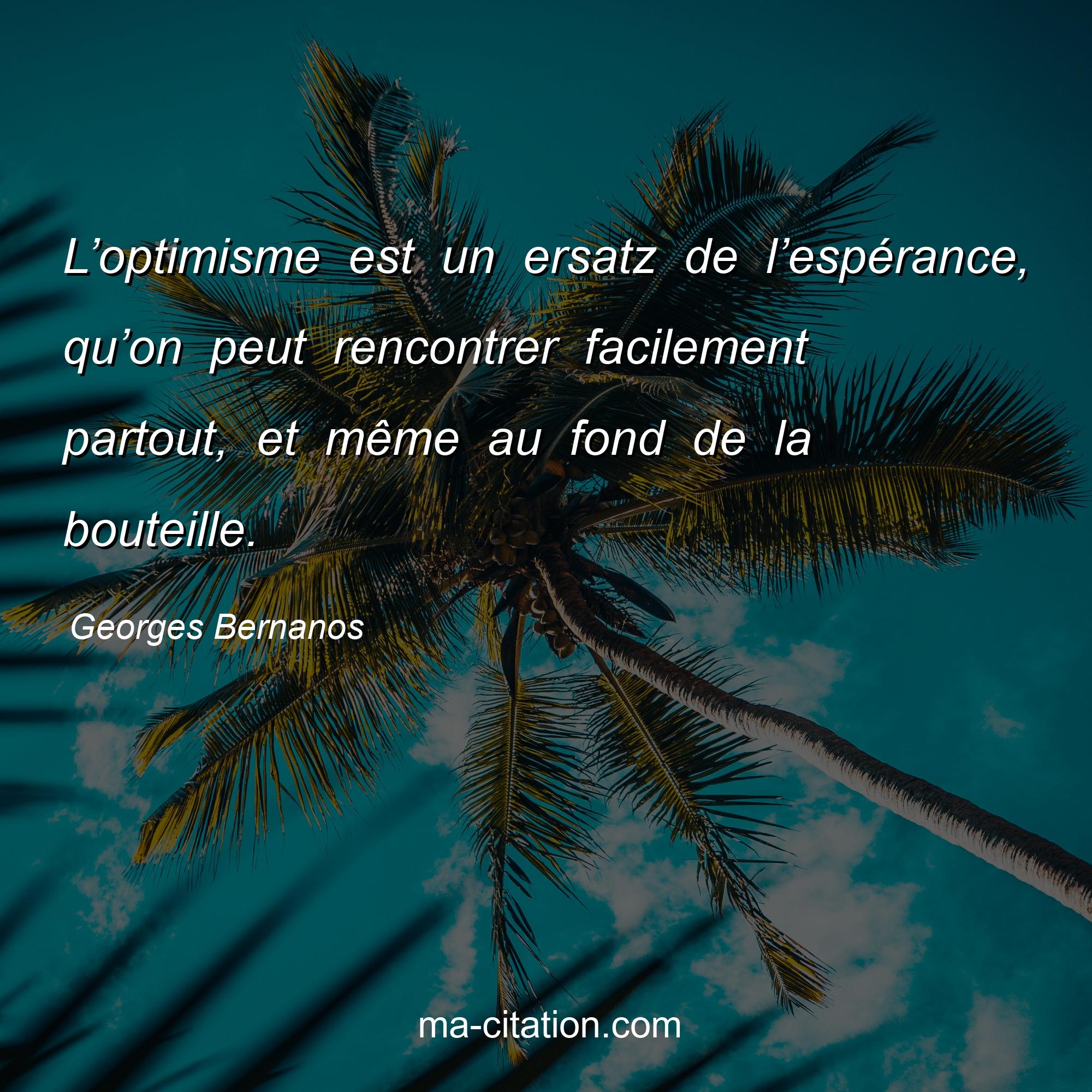 Citation sur la vie de Georges Bernanos :L’optimisme est un ersatz de l’espérance, qu’on peut rencontrer facilement partout, et même au fond de la bouteille.