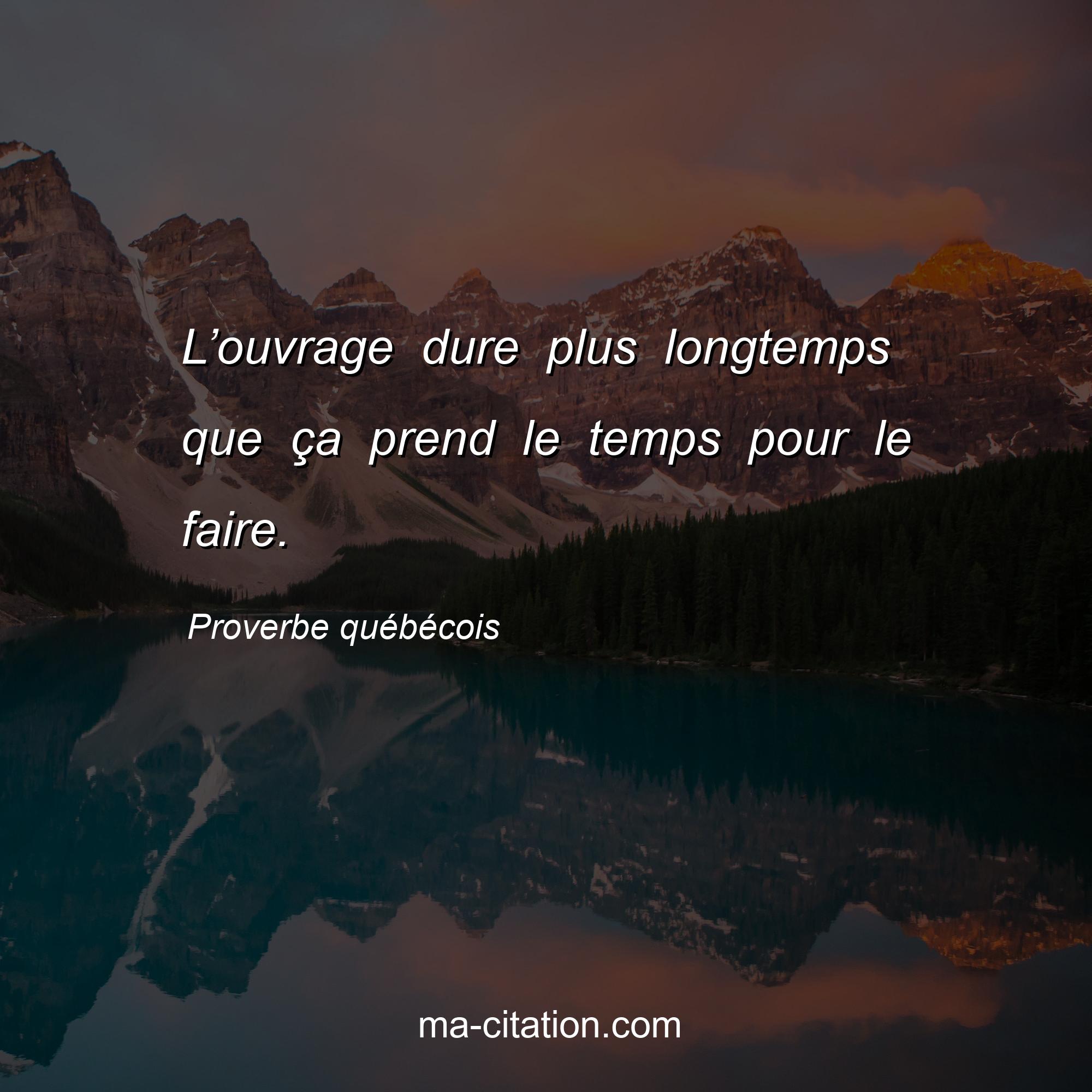 Proverbe québécois sur la vie :L’ouvrage dure plus longtemps que ça prend le temps pour le faire.
