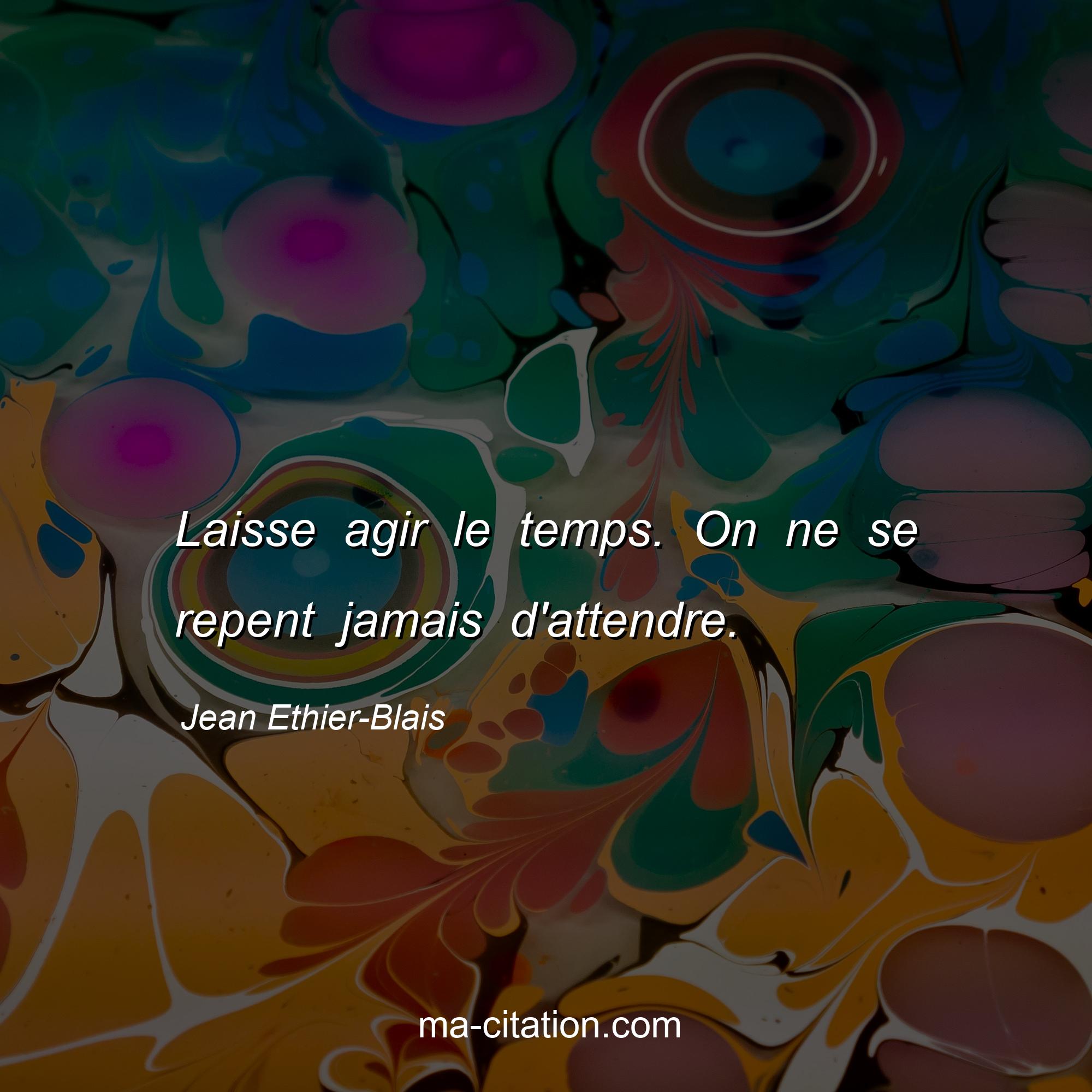 Jean Ethier-Blais est l'auteur de la citation sur la vie "Laisse agir le temps. On ne se repent jamais d'attendre.".