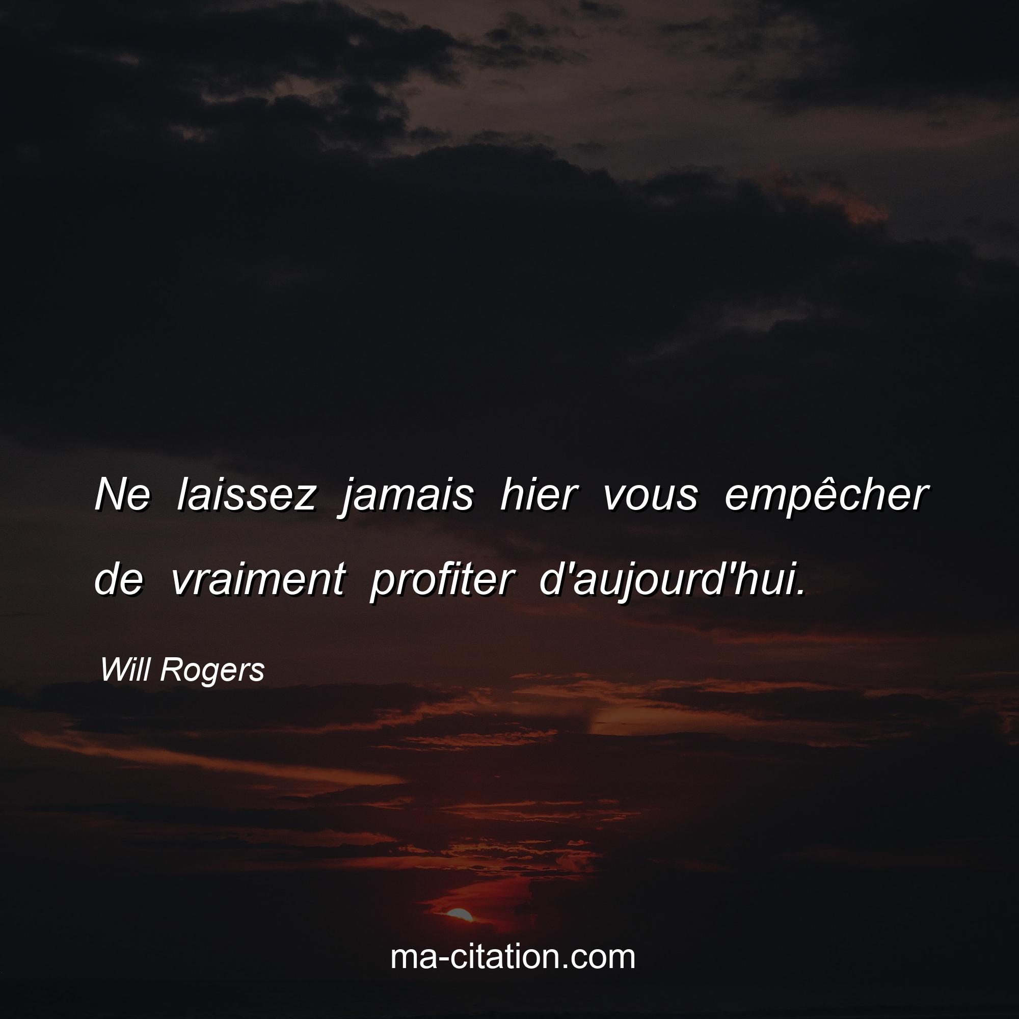 Citation sur la vie de Will Rogers :Ne laissez jamais hier vous empêcher de vraiment profiter d'aujourd'hui.