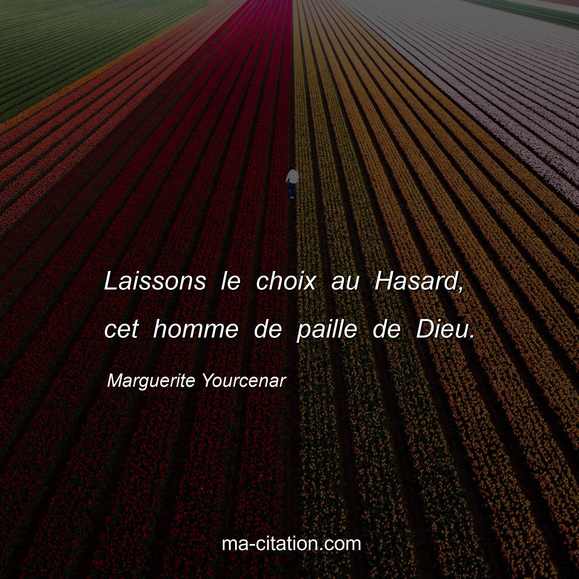 Citation sur la vie de Marguerite Yourcenar :Laissons le choix au Hasard, cet homme de paille de Dieu.