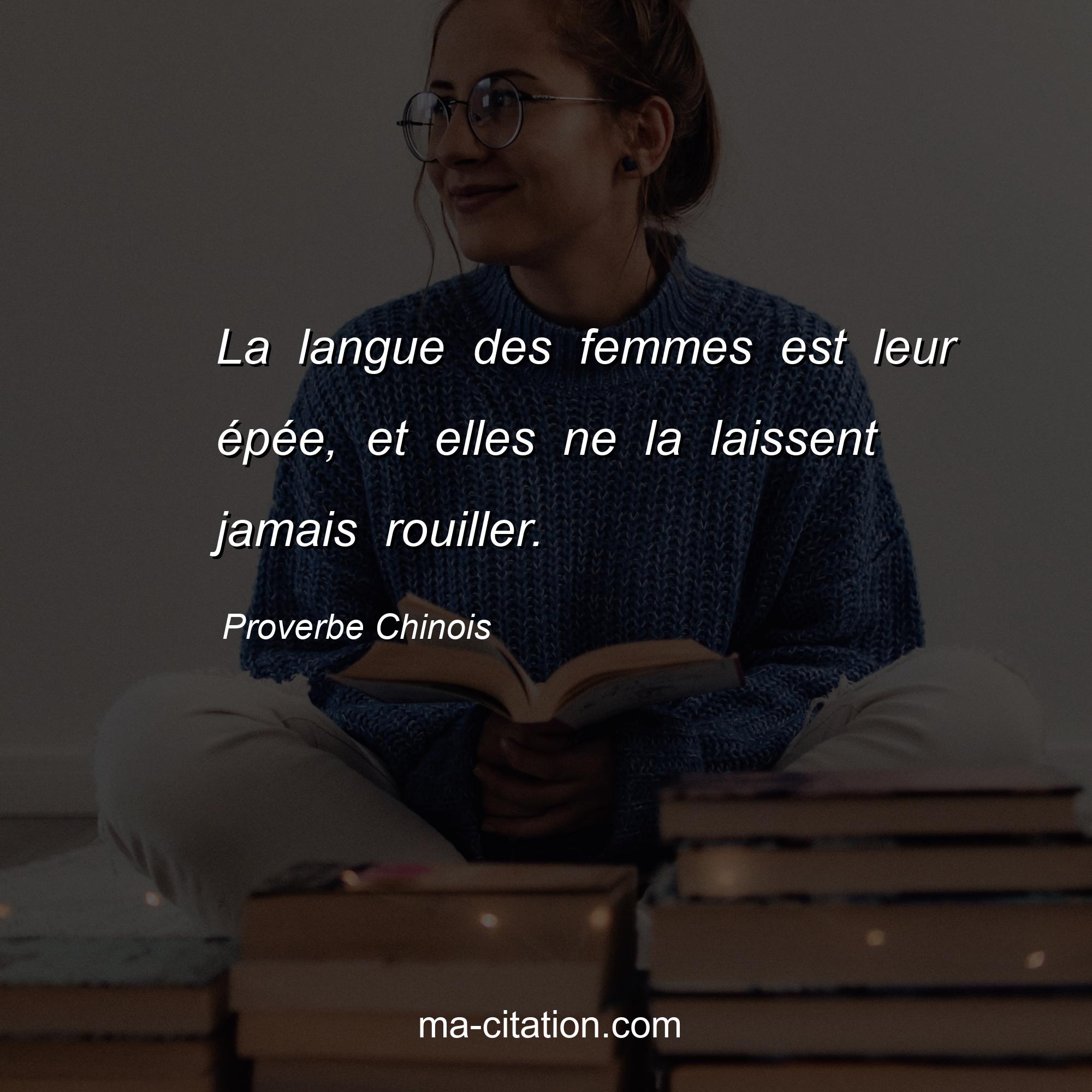 Proverbe Chinois sur la vie :La langue des femmes est leur épée, et elles ne la laissent jamais rouiller.