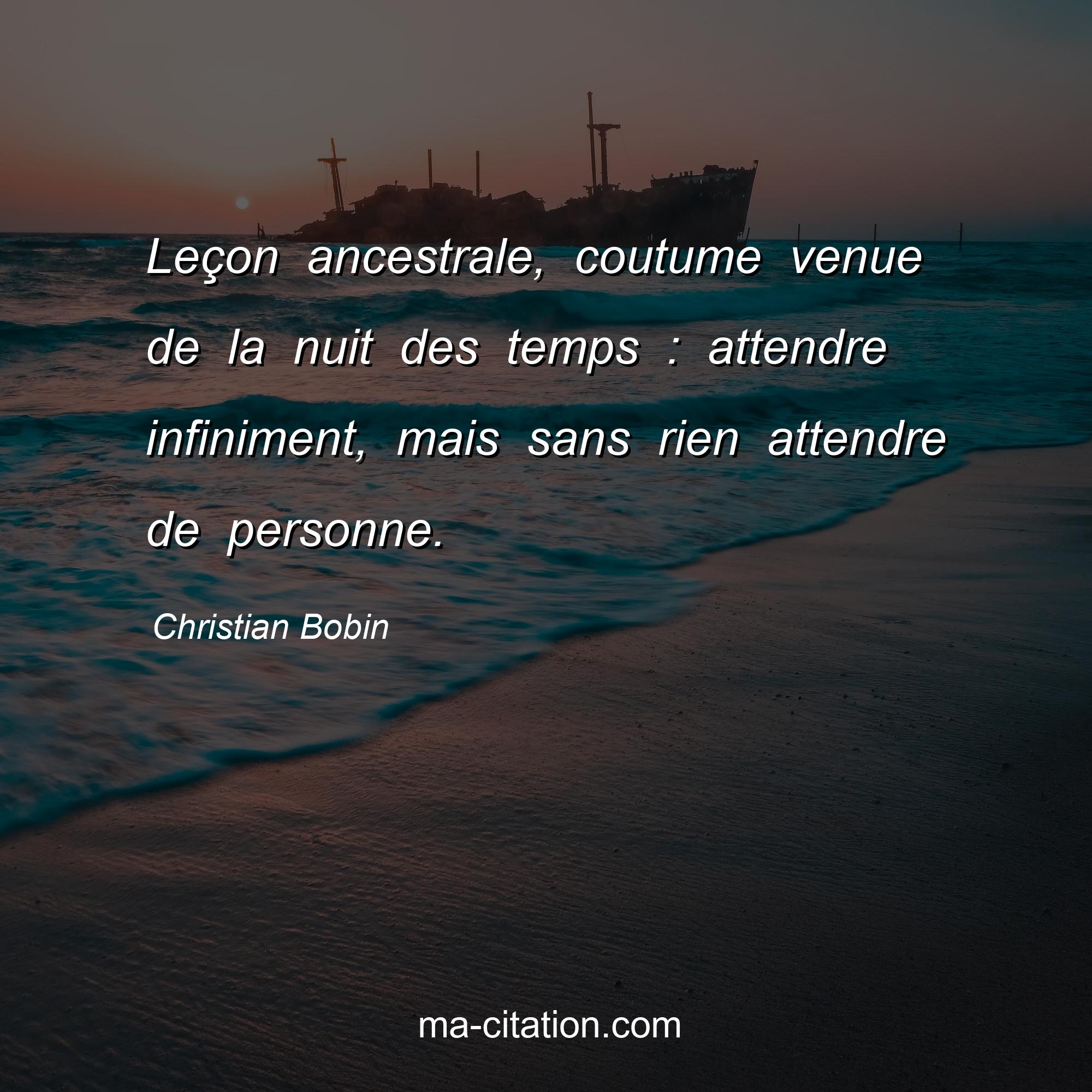 Citation sur la vie de Christian Bobin :Leçon ancestrale, coutume venue de la nuit des temps : attendre infiniment, mais sans rien attendre de personne.