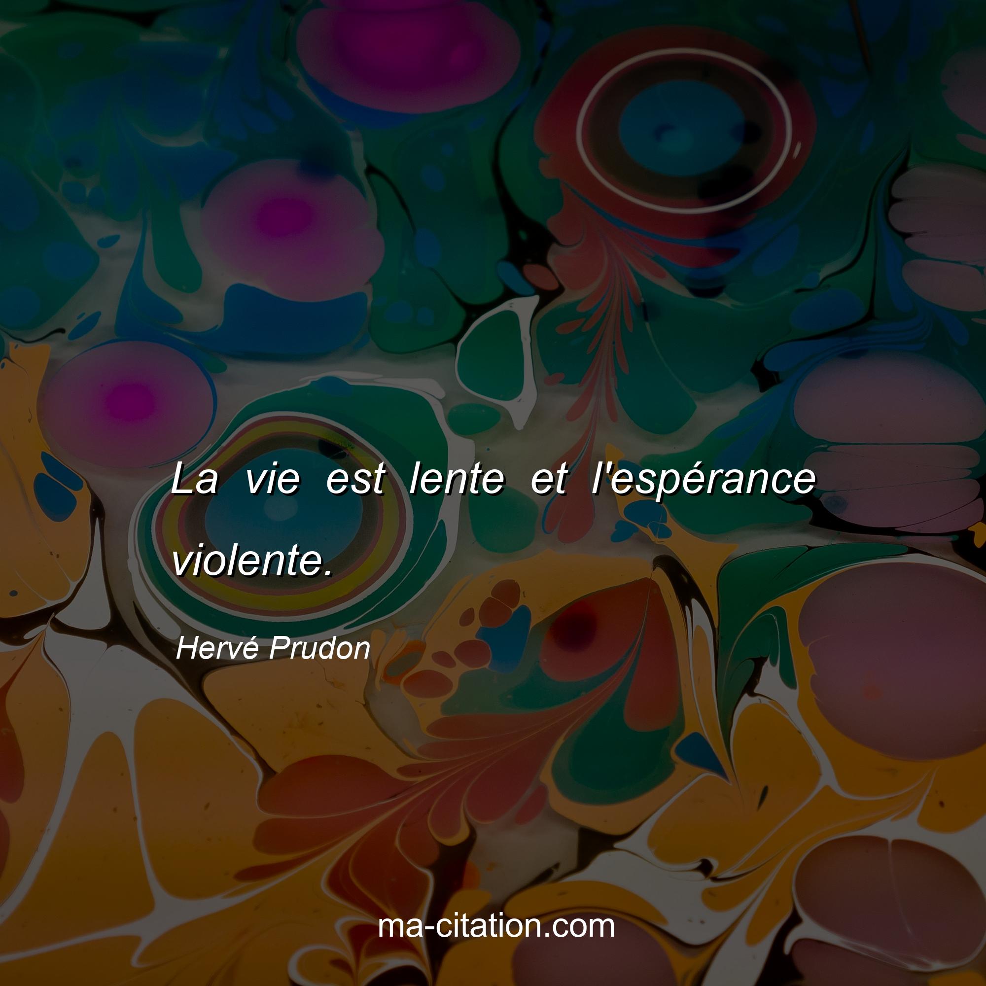 Hervé Prudon est l'auteur de la citation sur la vie "La vie est lente et l'espérance violente.".