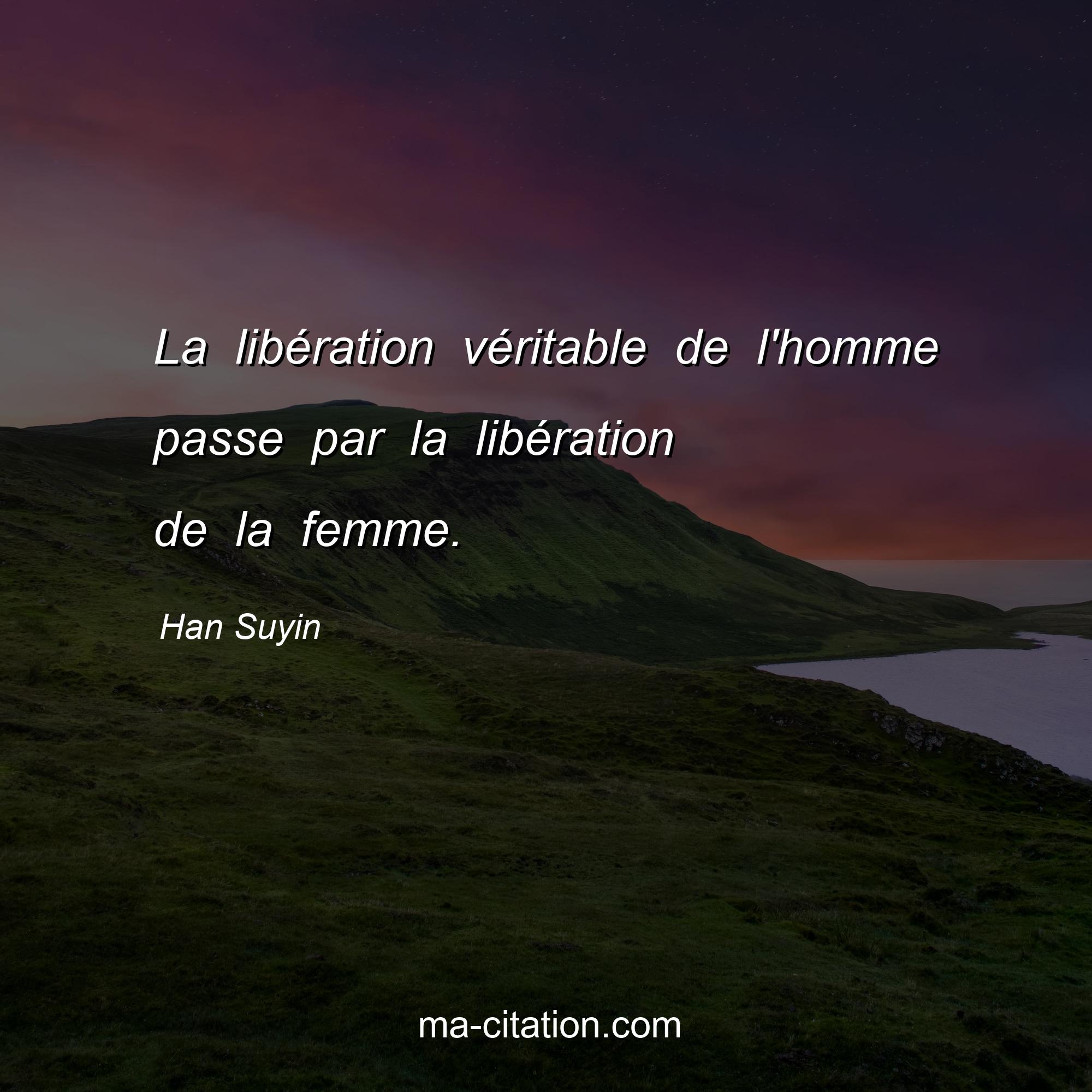 Han Suyin est l'auteur de la citation sur la vie "La libération véritable de l'homme passe par la libération de la femme.".