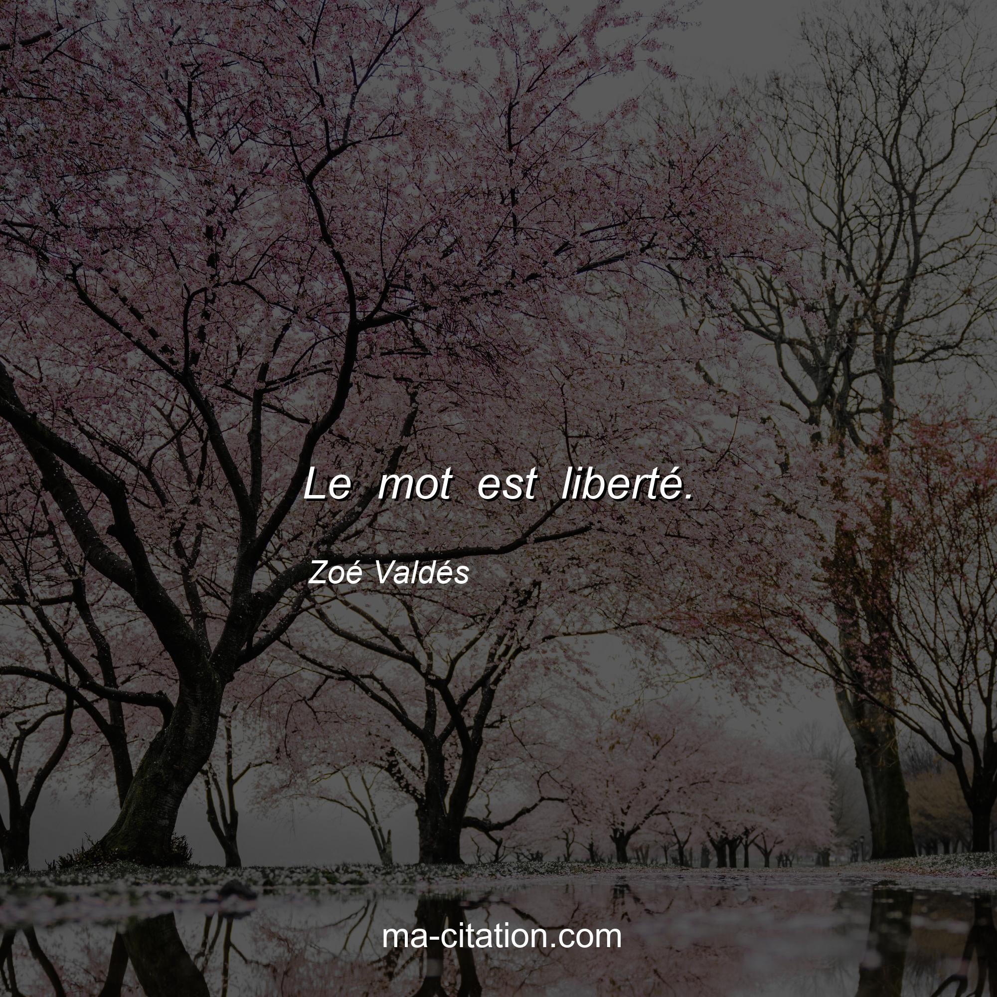 Citation sur la vie de Zoé Valdés :Le mot est liberté.