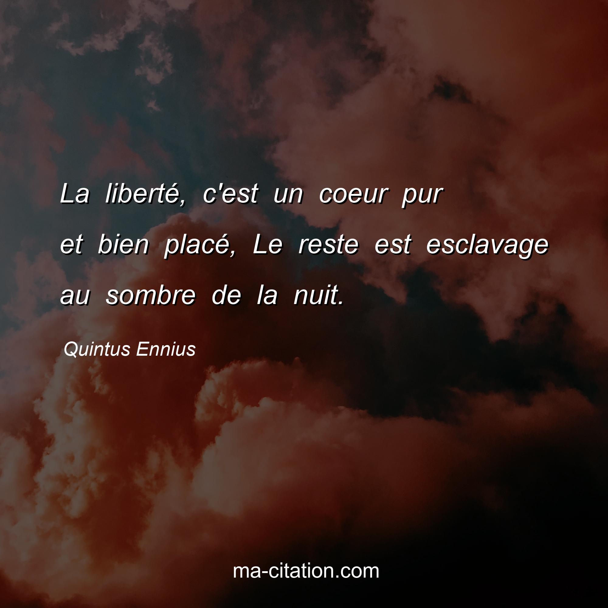 Citation sur la vie de Quintus Ennius :La liberté, c'est un coeur pur et bien placé, Le reste est esclavage au sombre de la nuit.