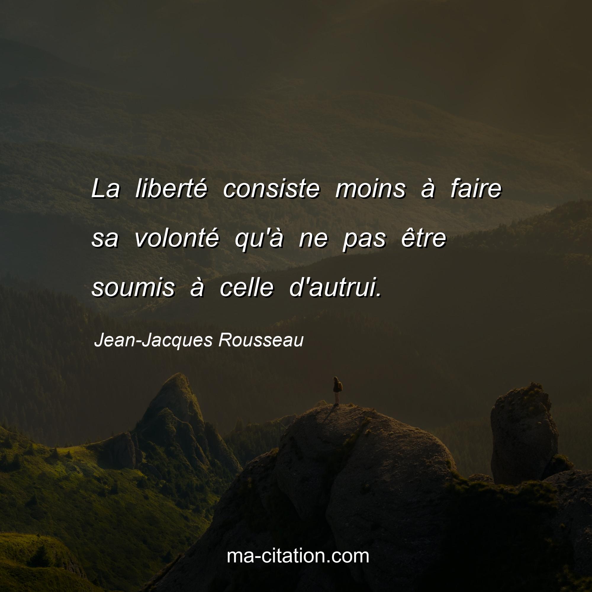 Citation sur la vie de Jean-Jacques Rousseau :La liberté consiste moins à faire sa volonté qu'à ne pas être soumis à celle d'autrui.
