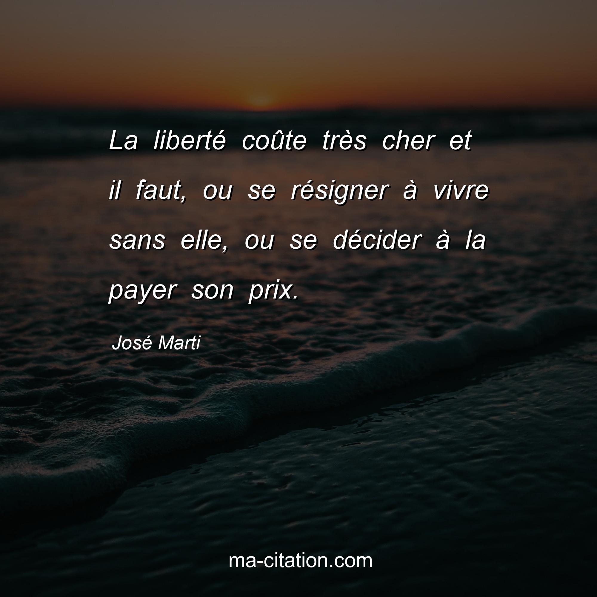 Citation sur la vie de José Marti :La liberté coûte très cher et il faut, ou se résigner à vivre sans elle, ou se décider à la payer son prix.