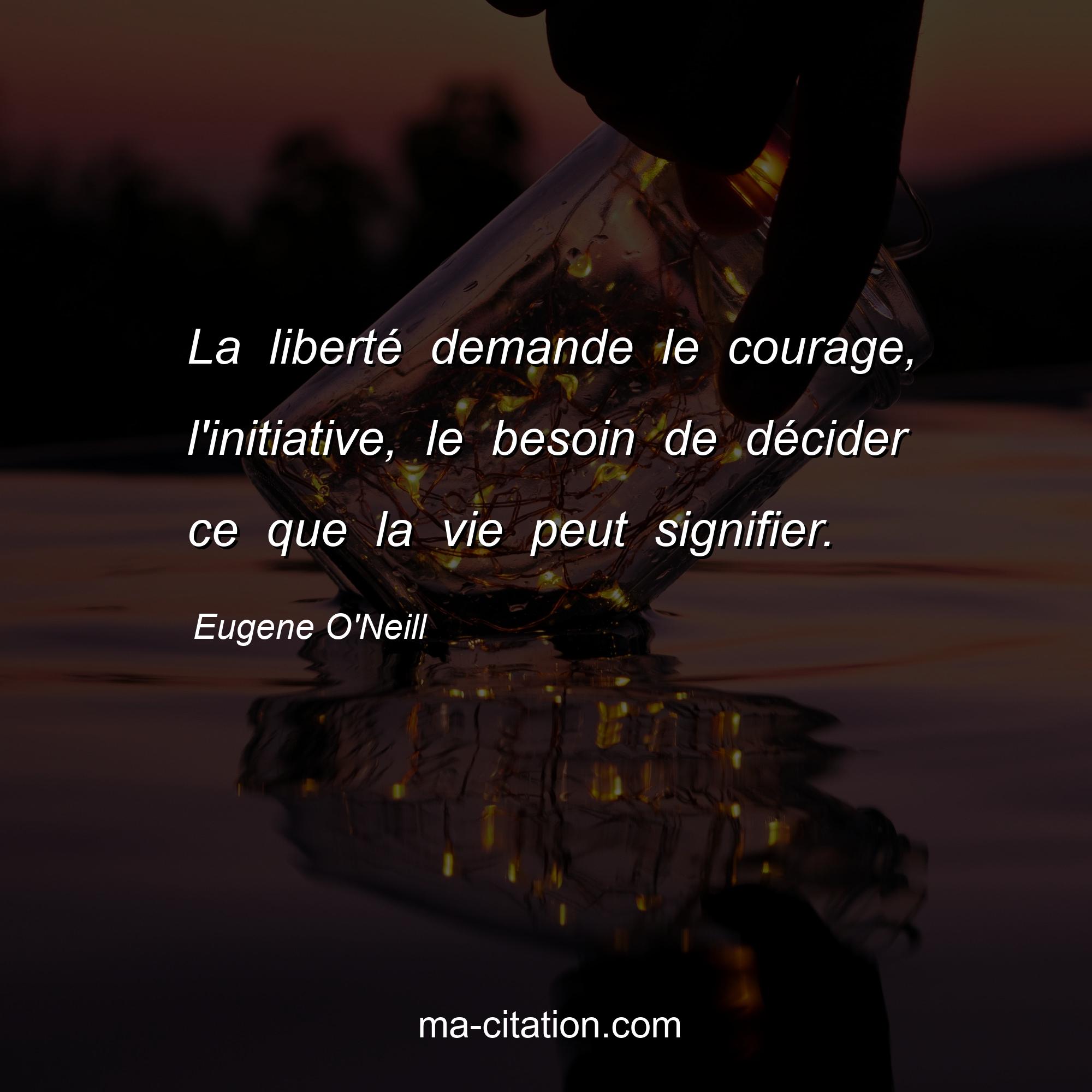 Citation sur la vie d'Eugene O'Neill :La liberté demande le courage, l'initiative, le besoin de décider ce que la vie peut signifier.