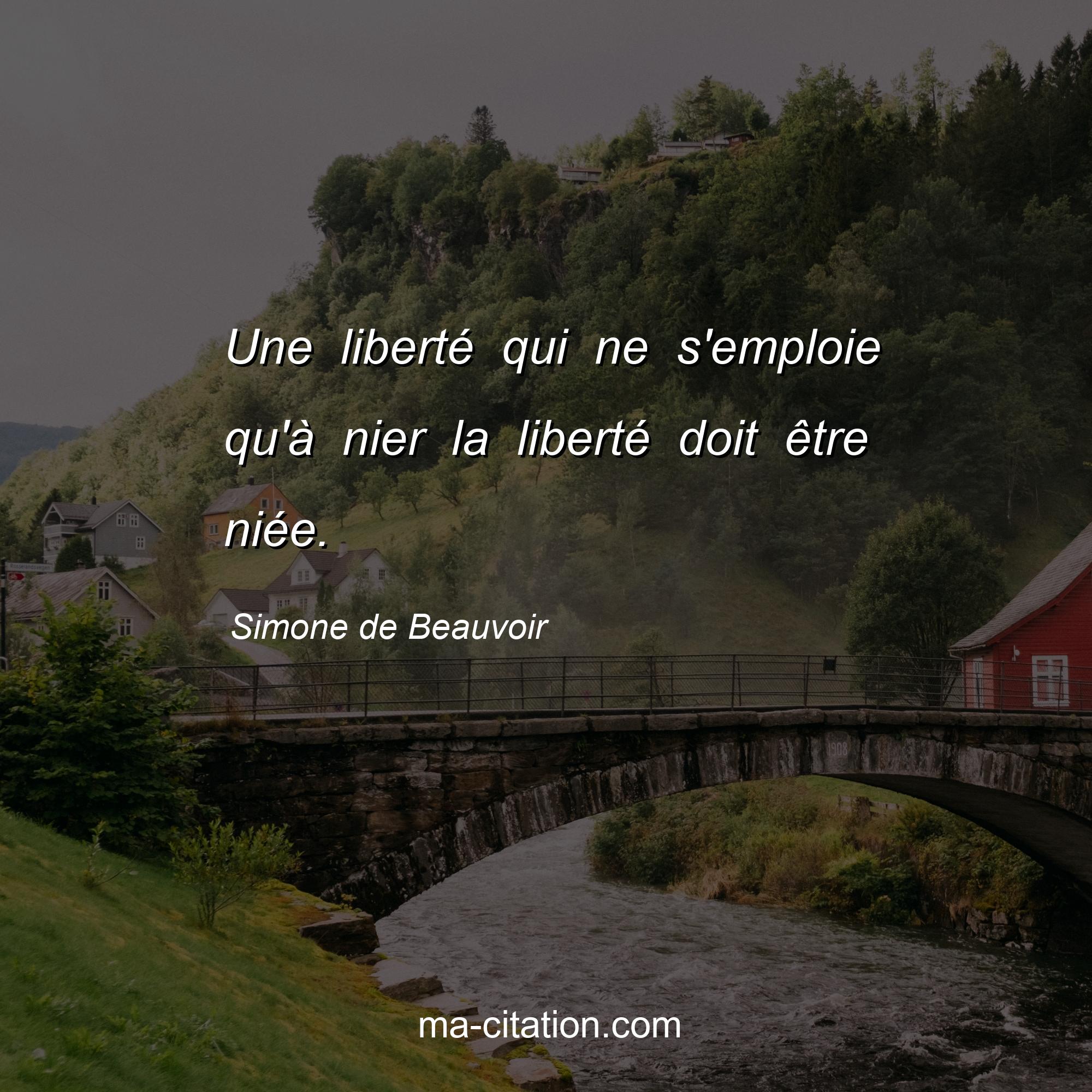 Citation sur la vie de Simone de Beauvoir :Une liberté qui ne s'emploie qu'à nier la liberté doit être niée.