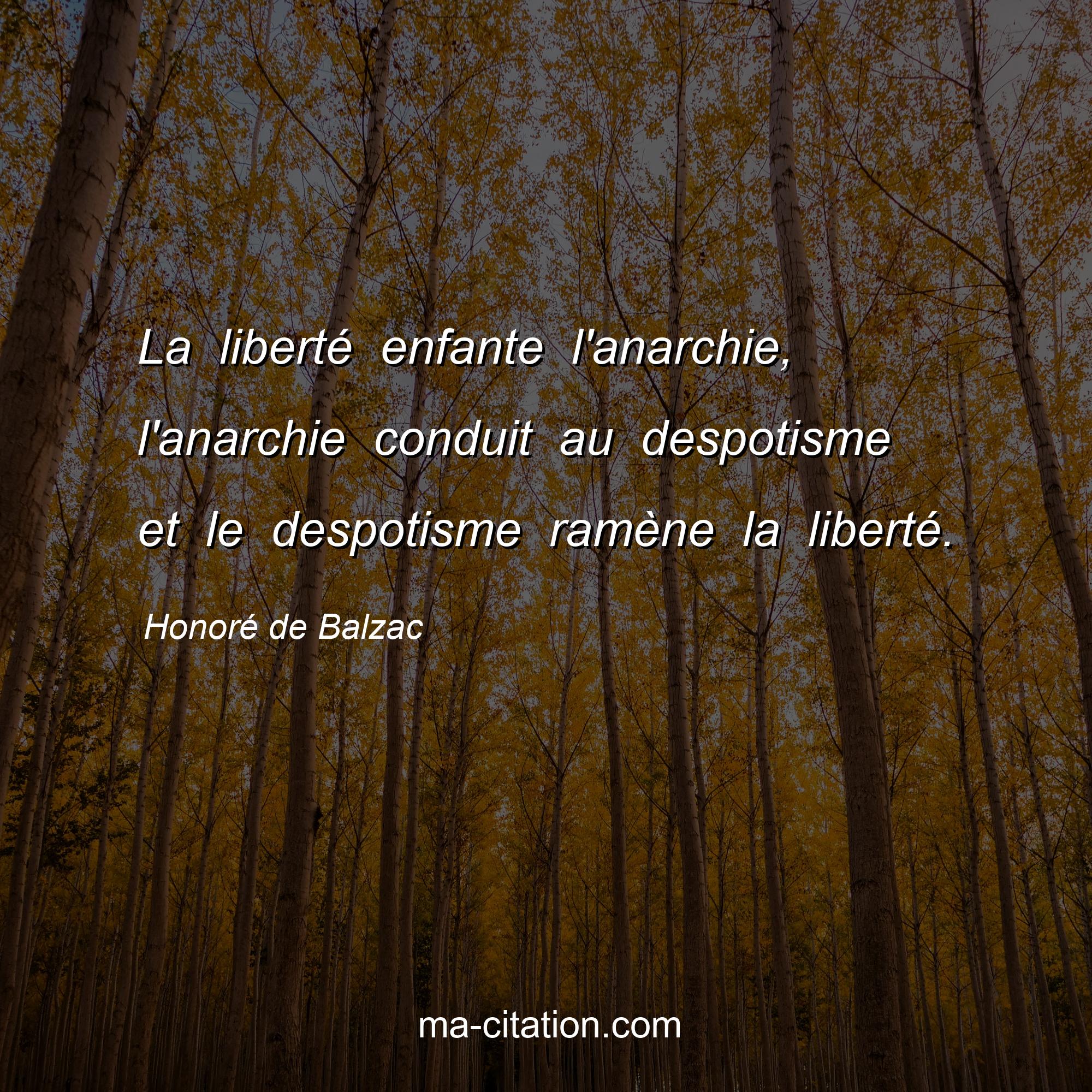 Citation sur la vie de Honoré de Balzac :La liberté enfante l'anarchie, l'anarchie conduit au despotisme et le despotisme ramène la liberté.