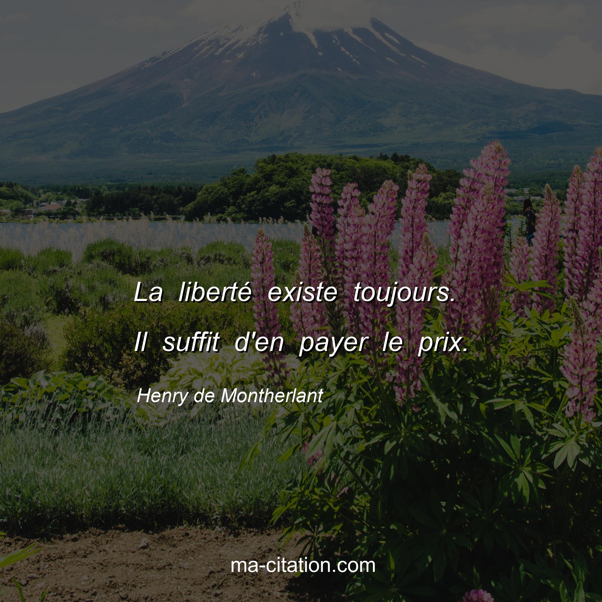 Henry de Montherlant est l'auteur de la citation sur la vie "La liberté existe toujours. Il suffit d'en payer le prix.".