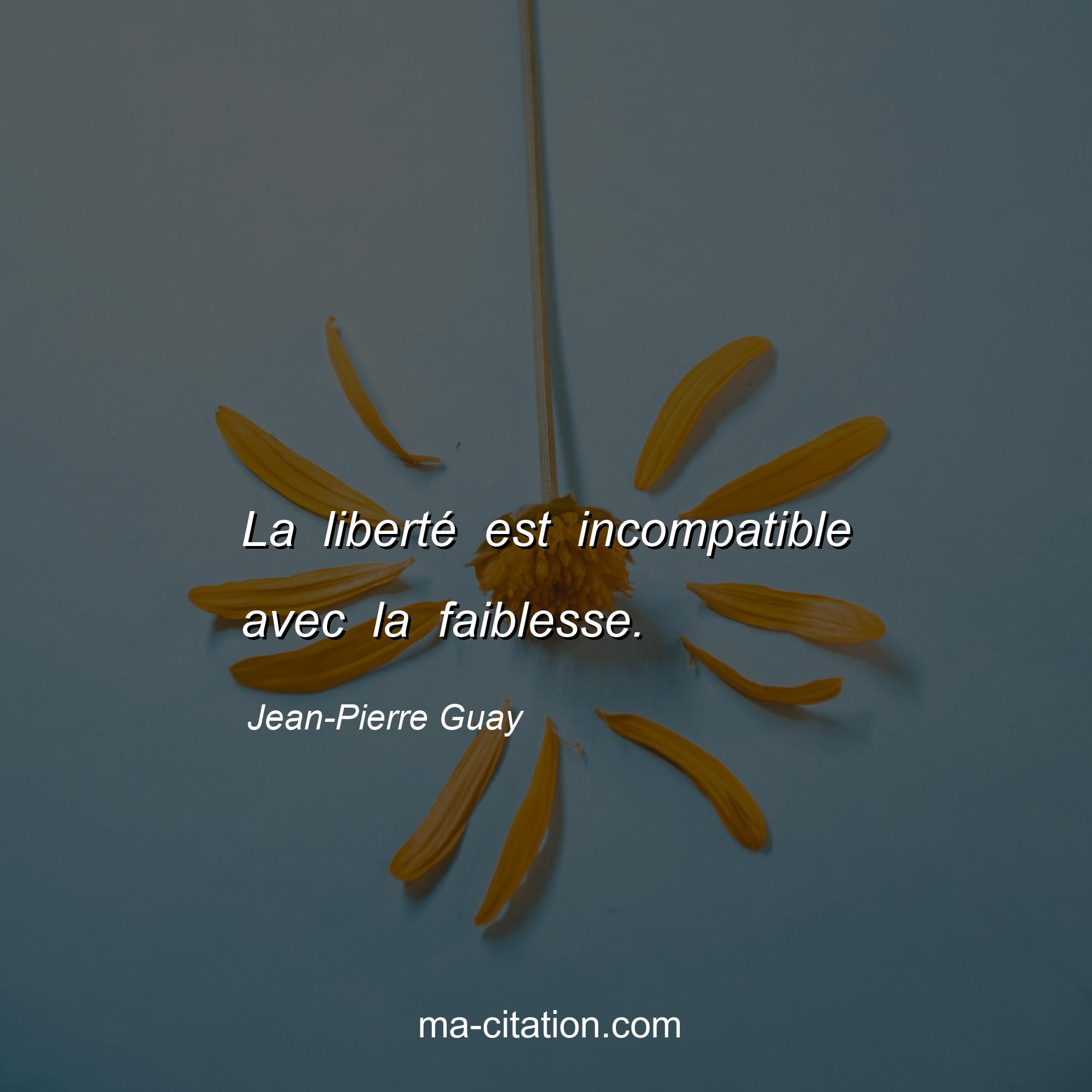 Citation sur la vie de Jean-Pierre Guay :La liberté est incompatible avec la faiblesse.