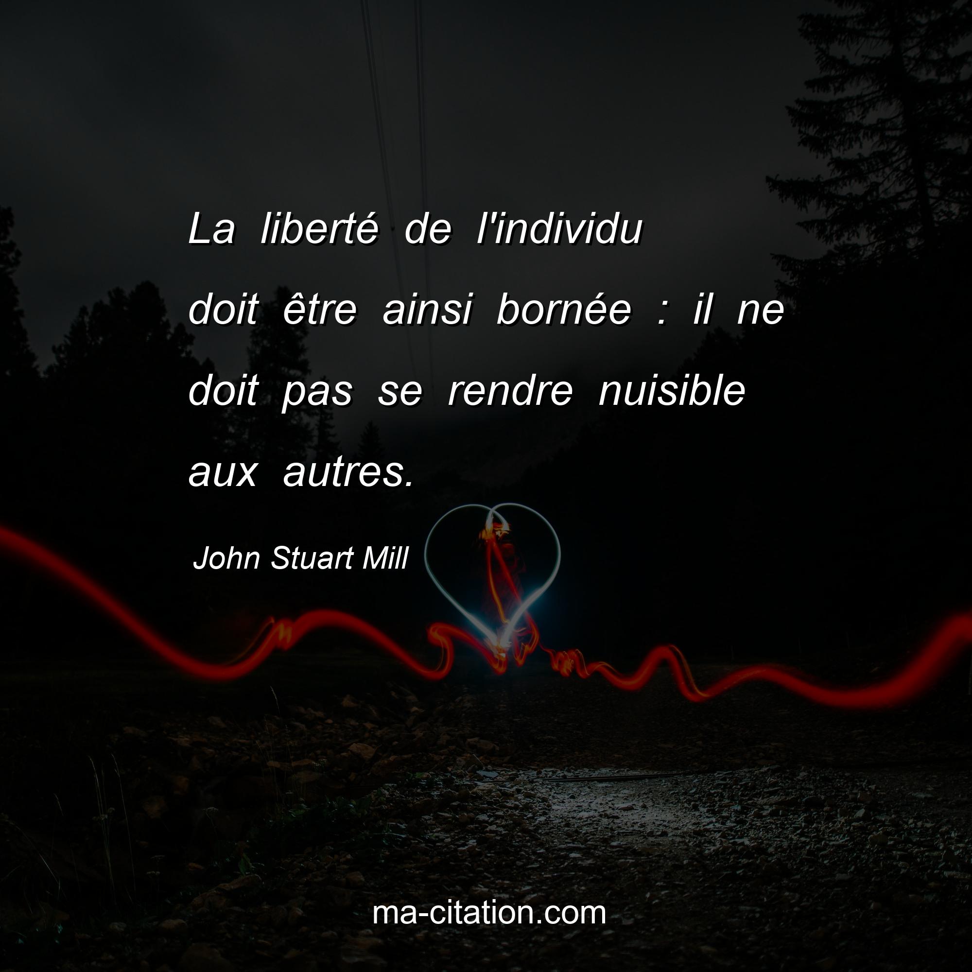 Citation sur la vie de John Stuart Mill :La liberté de l'individu doit être ainsi bornée : il ne doit pas se rendre nuisible aux autres.