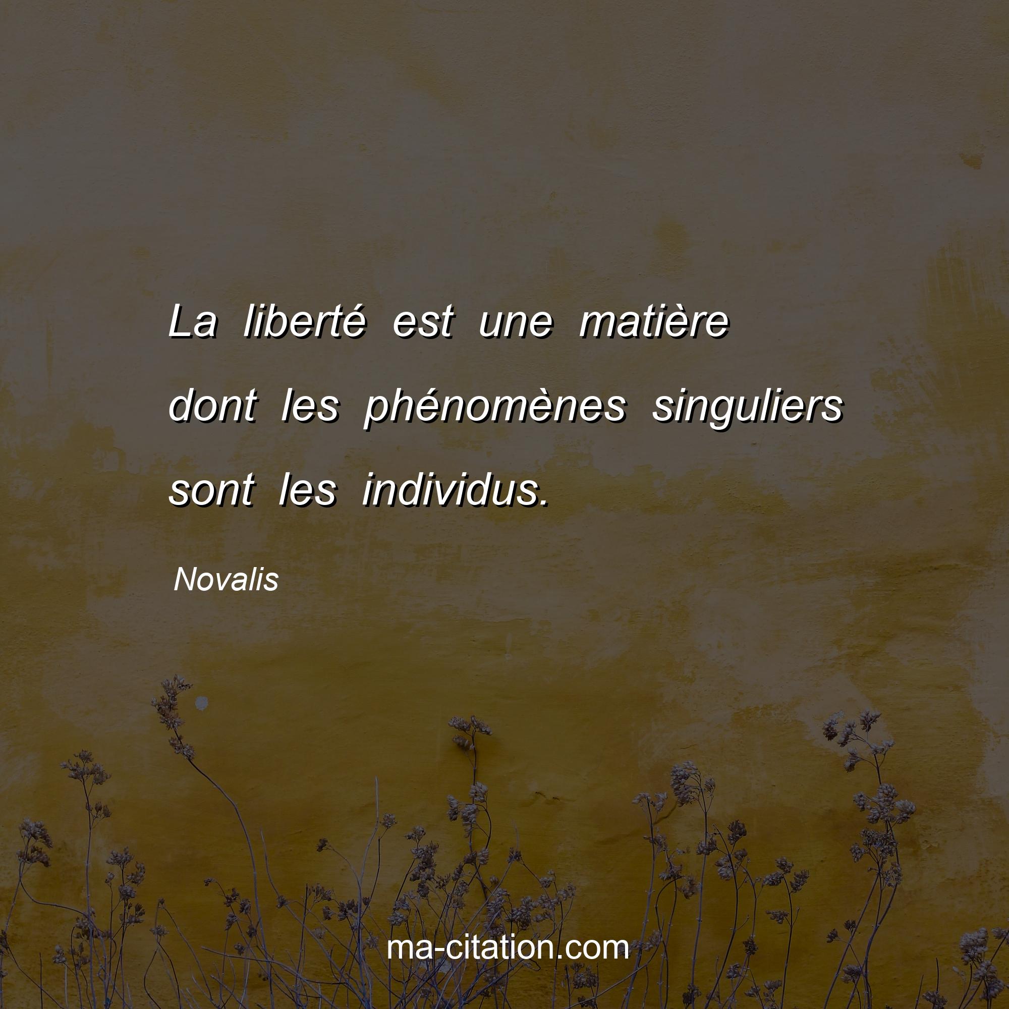 Citation sur la vie de Novalis :La liberté est une matière dont les phénomènes singuliers sont les individus.