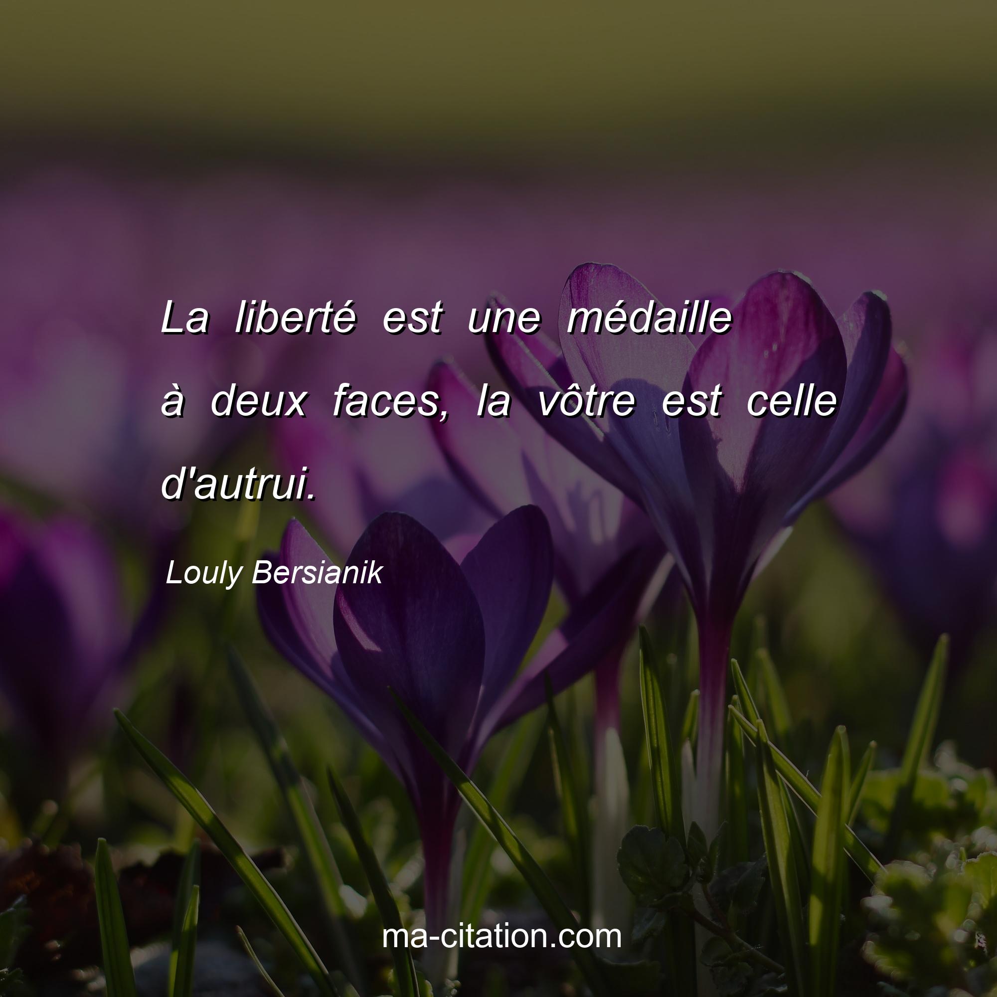 Louly Bersianik est l'auteur de la citation sur la vie "La liberté est une médaille à deux faces, la vôtre est celle d'autrui.".