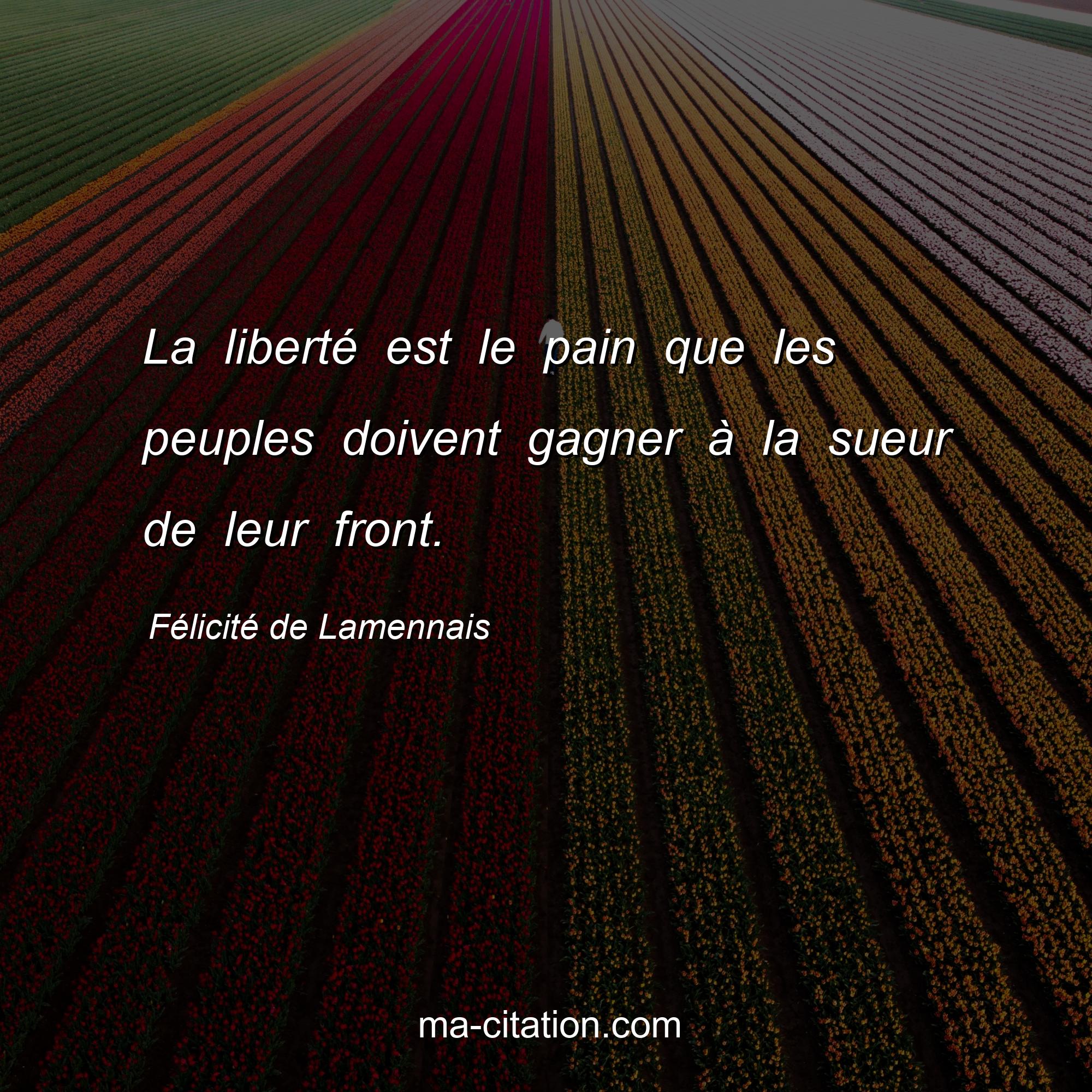 Citation sur la vie de Félicité de Lamennais :La liberté est le pain que les peuples doivent gagner à la sueur de leur front.