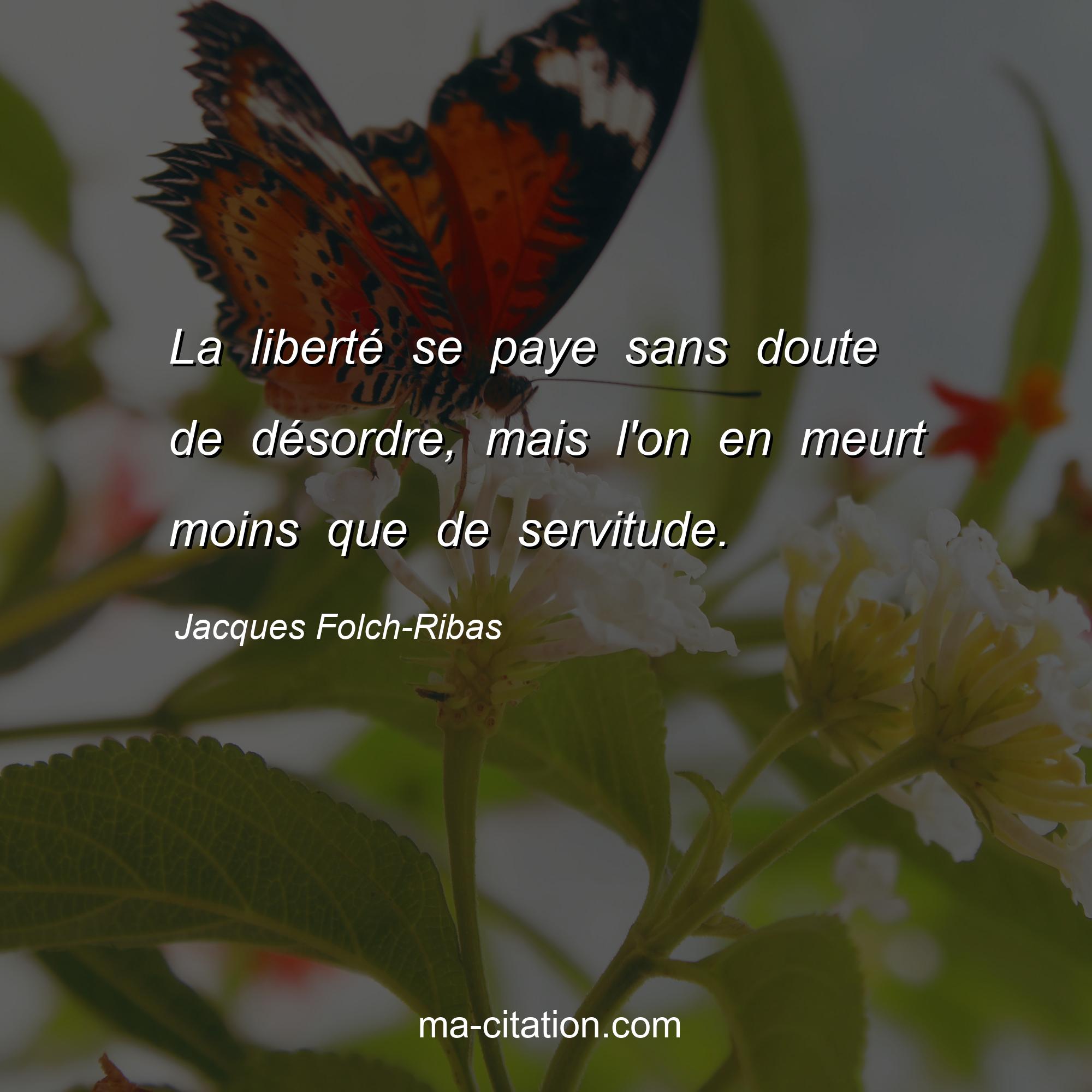 Citation sur la vie de Jacques Folch-Ribas :La liberté se paye sans doute de désordre, mais l'on en meurt moins que de servitude.
