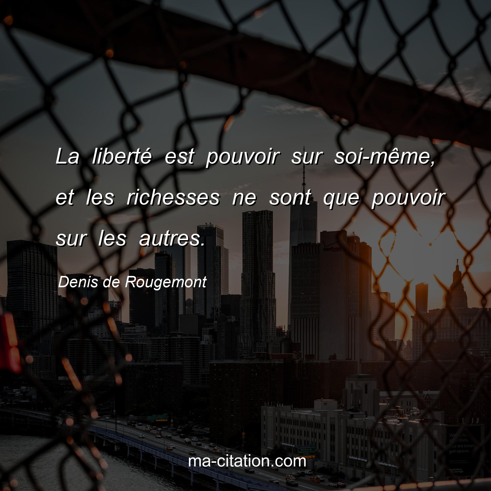 Denis de Rougemont est l'auteur de la citation sur la vie "La liberté est pouvoir sur soi-même, et les richesses ne sont que pouvoir sur les autres.".