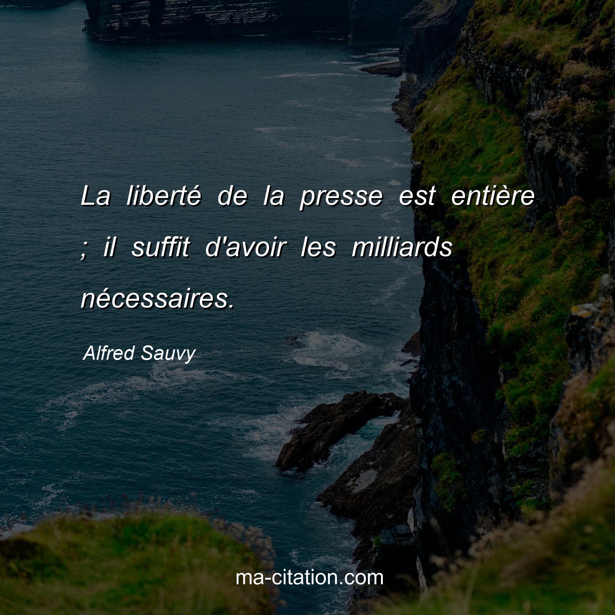 Citation sur la vie d'Alfred Sauvy :La liberté de la presse est entière ; il suffit d'avoir les milliards nécessaires.