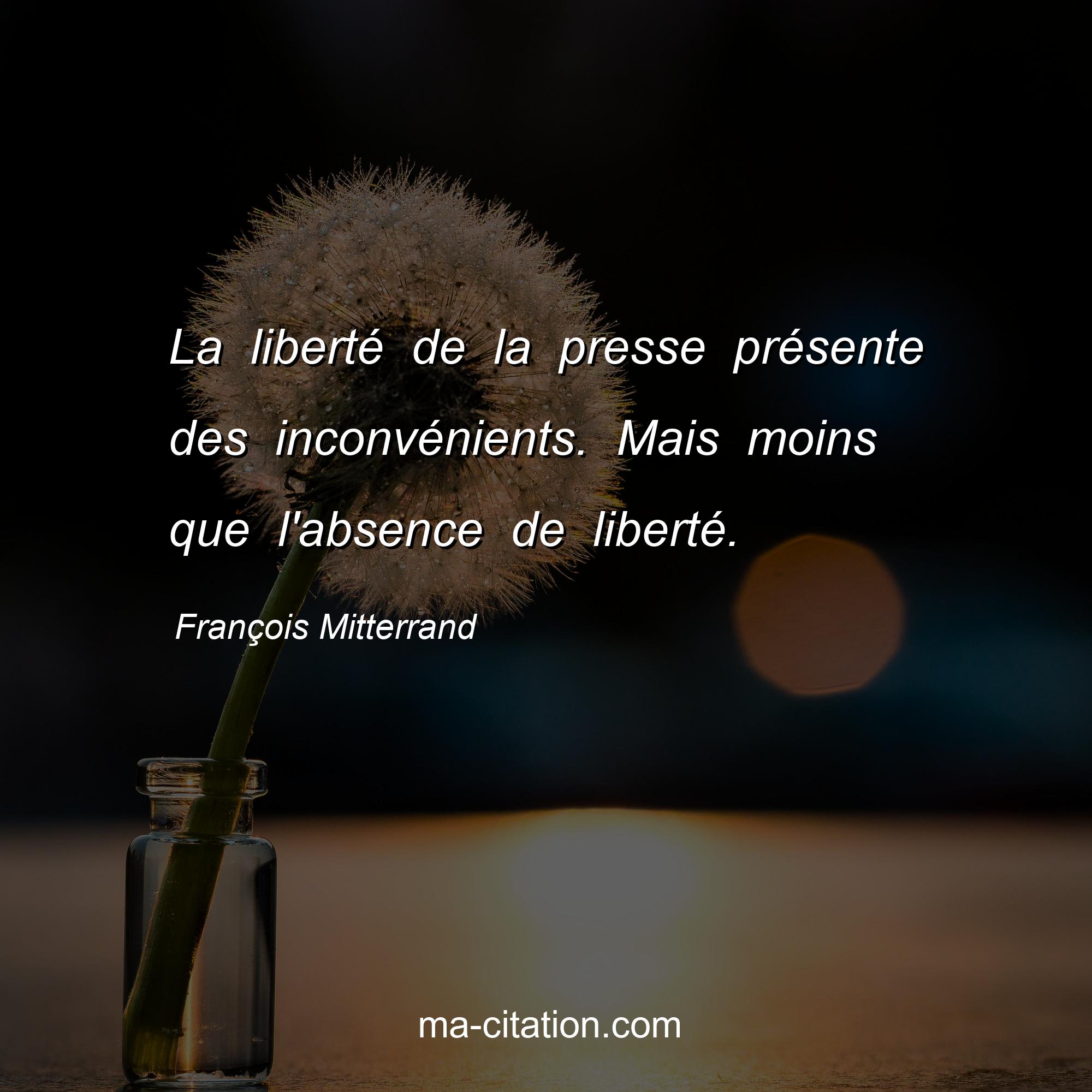 Citation sur la vie de François Mitterrand :La liberté de la presse présente des inconvénients. Mais moins que l'absence de liberté.