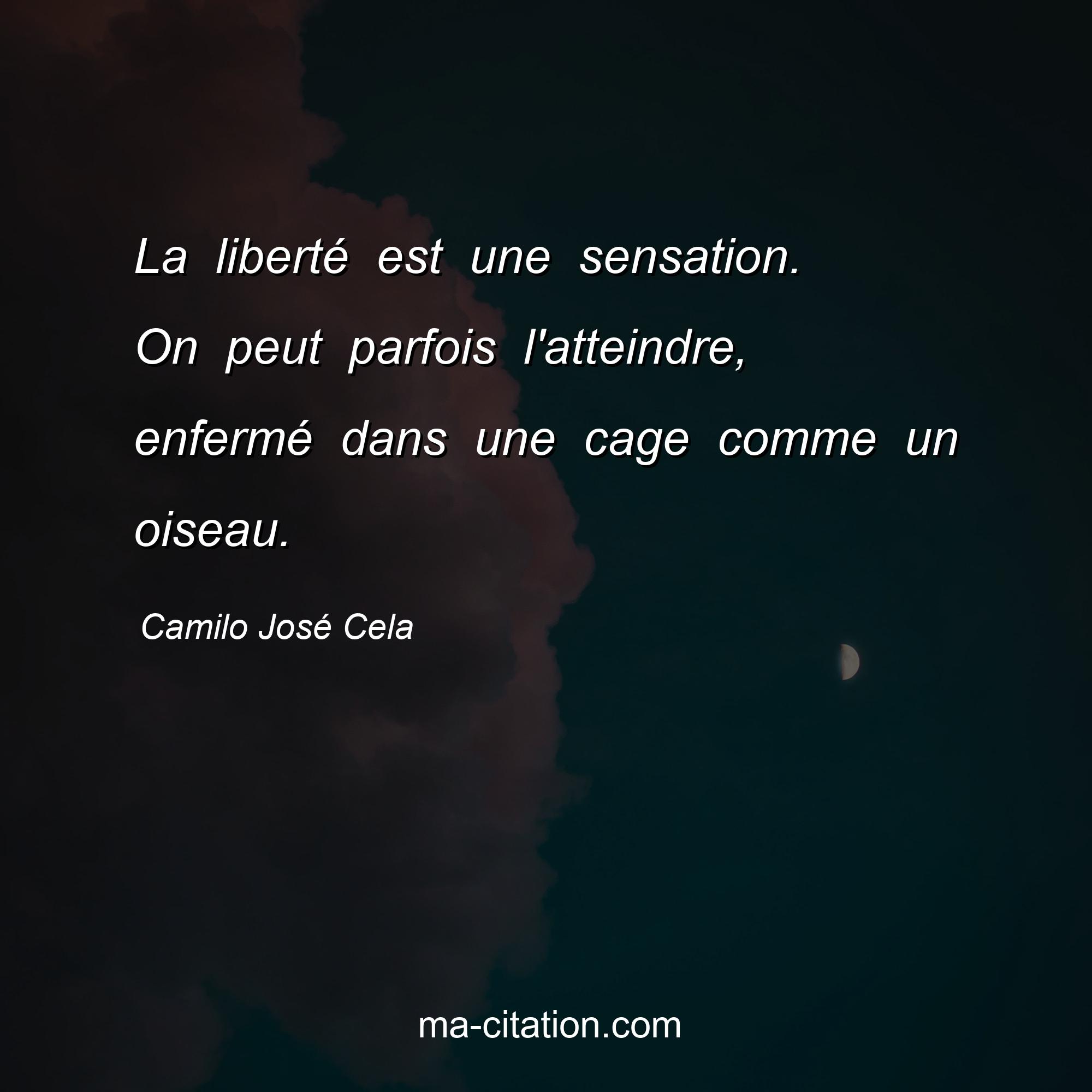 Citation sur la vie de Camilo José Cela :La liberté est une sensation. On peut parfois l'atteindre, enfermé dans une cage comme un oiseau.