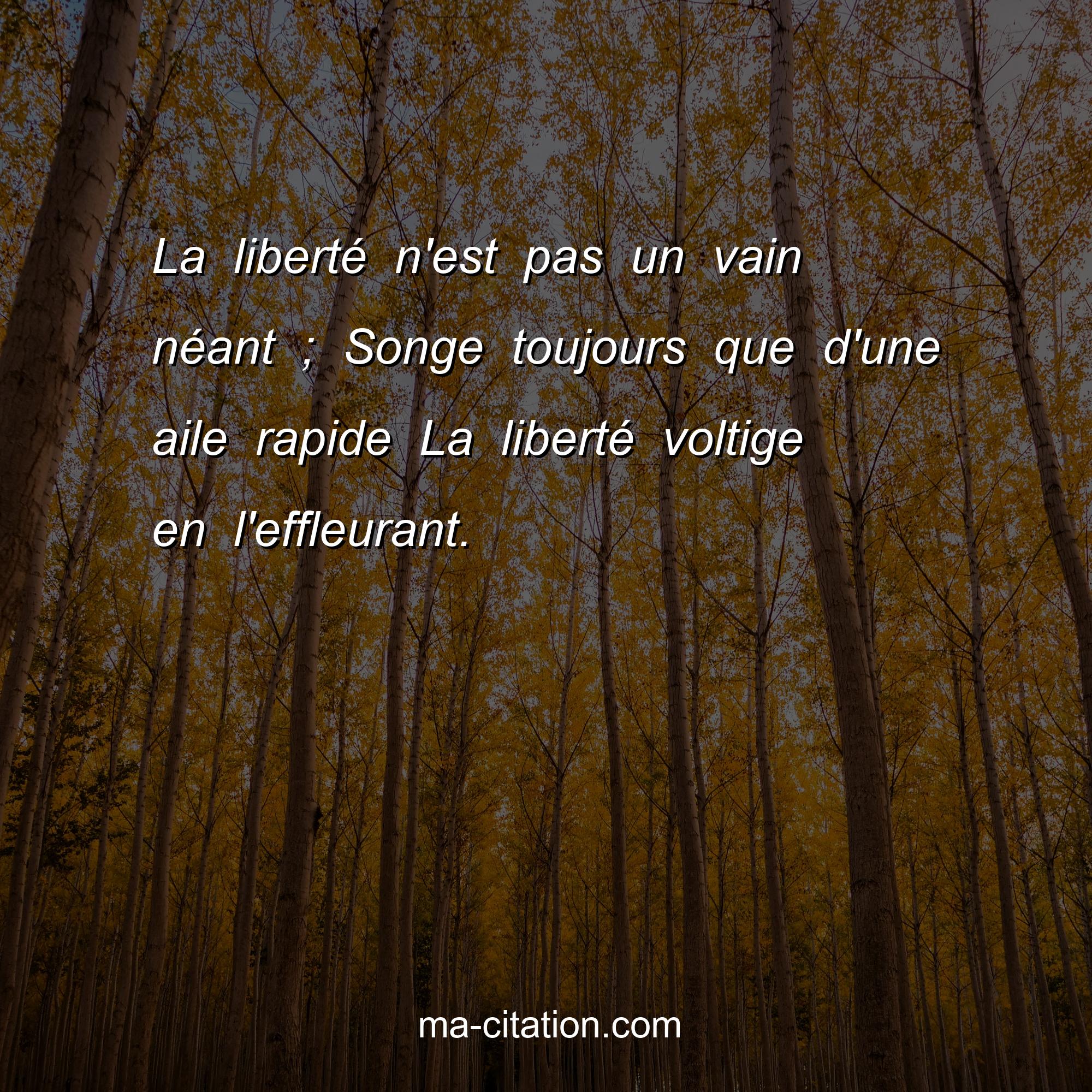 La liberté n'est pas un vain néant ; Songe toujours que d'une aile rapide La liberté voltige en l'effleurant.