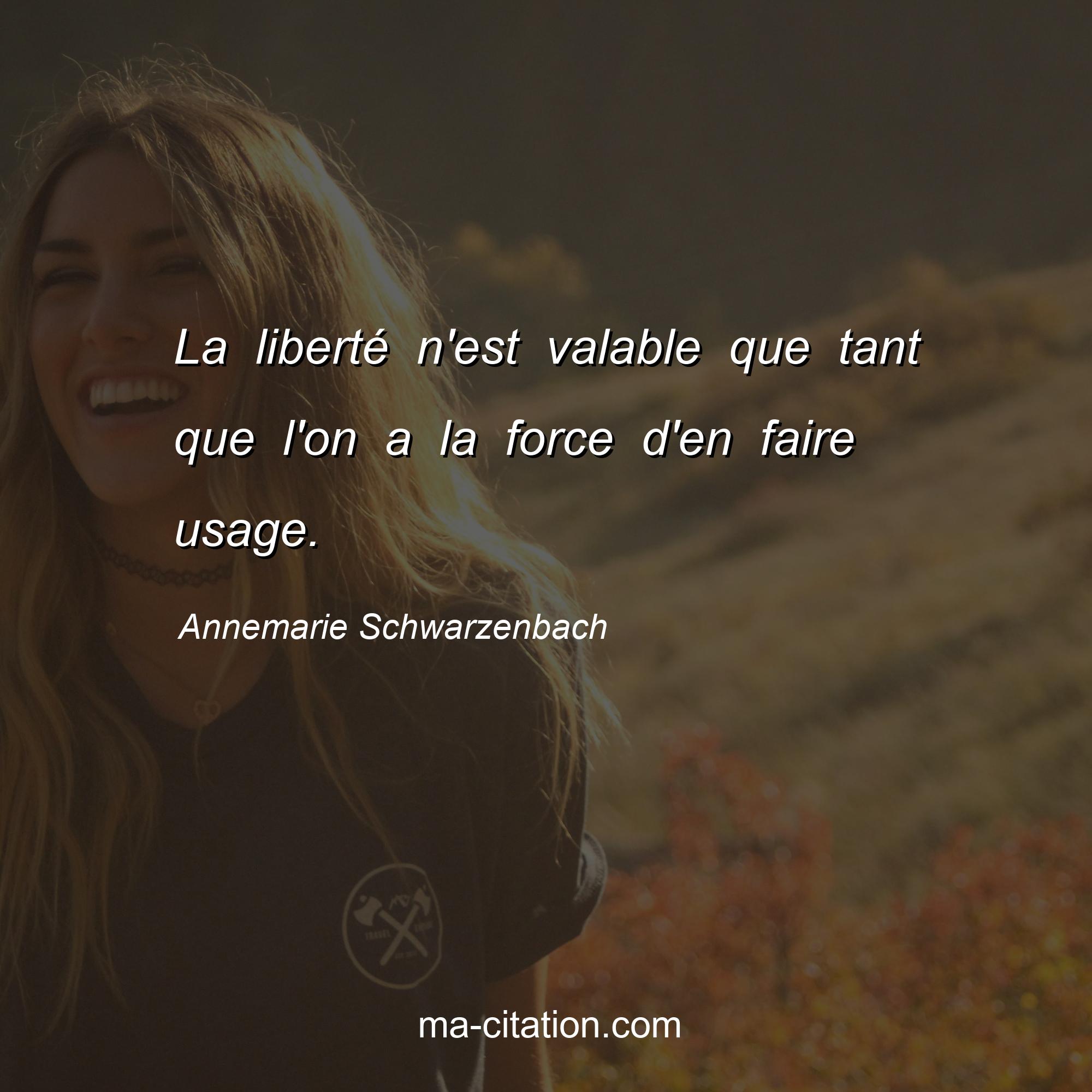 Citation sur la vie d'Annemarie Schwarzenbach :La liberté n'est valable que tant que l'on a la force d'en faire usage.