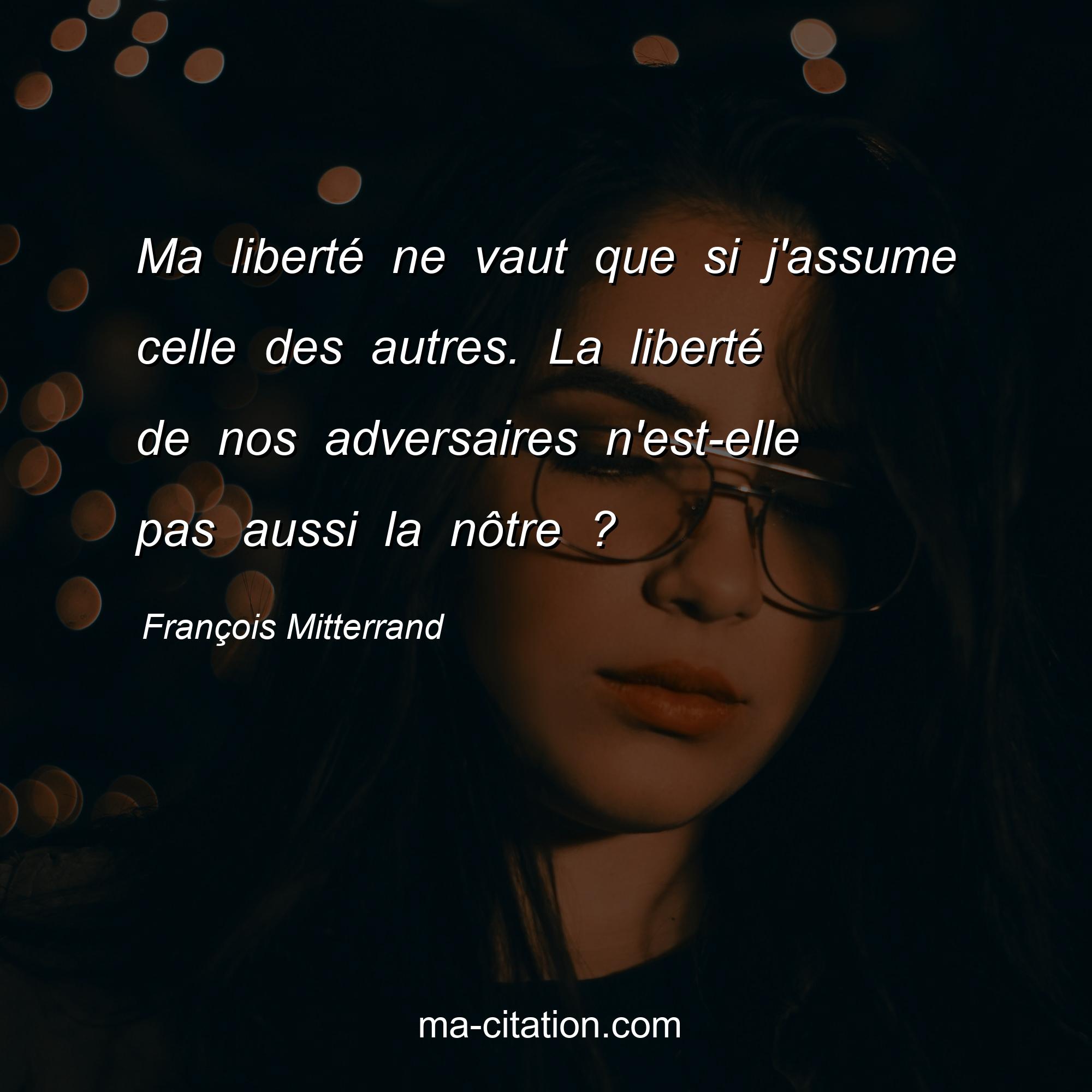 Citation sur la vie de François Mitterrand :Ma liberté ne vaut que si j'assume celle des autres. La liberté de nos adversaires n'est-elle pas aussi la nôtre ?