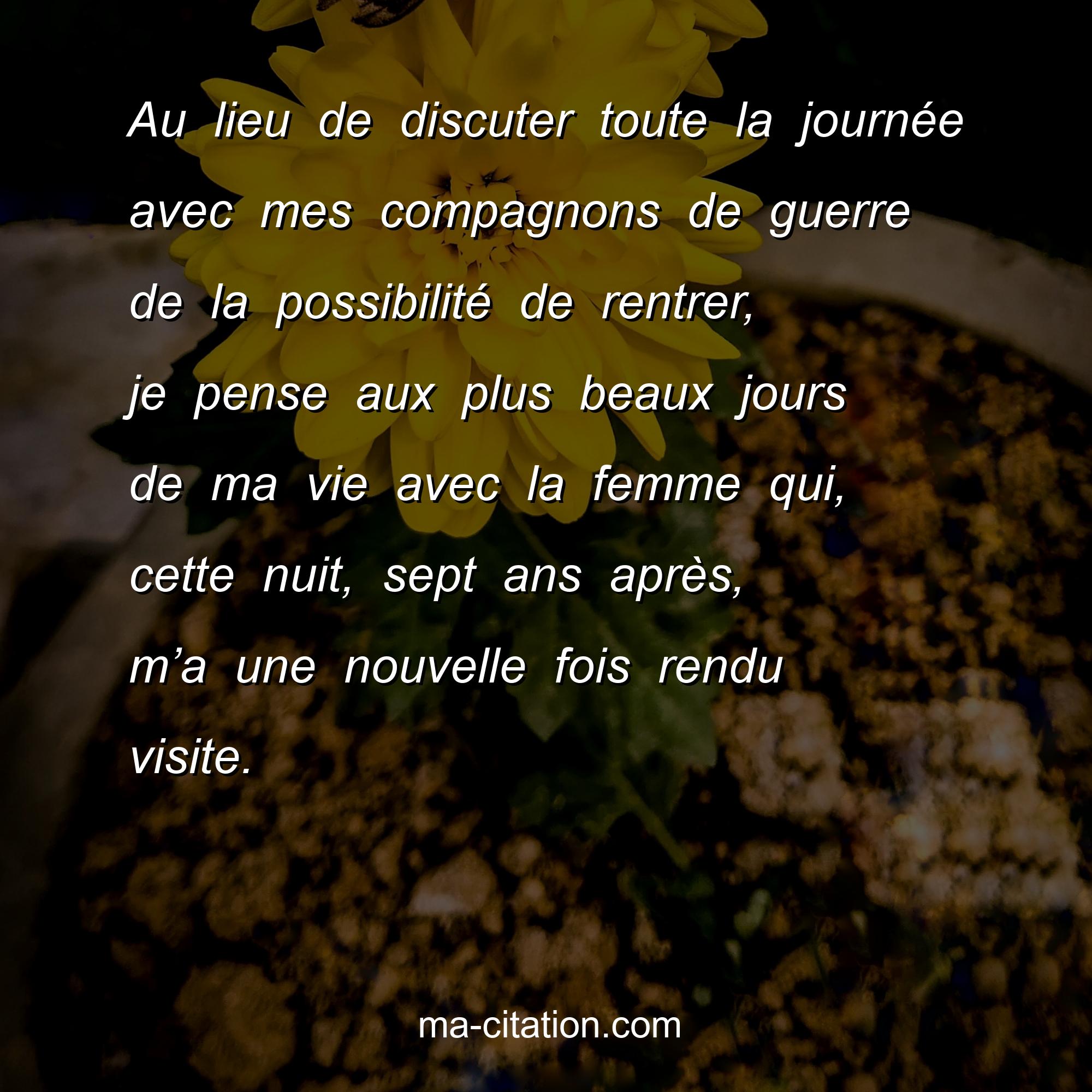 Au lieu de discuter toute la journée avec mes compagnons de guerre de la possibilité de rentrer, je pense aux plus beaux jours de ma vie avec la femme qui, cette nuit, sept ans après, m’a une nouvelle fois rendu visite.
