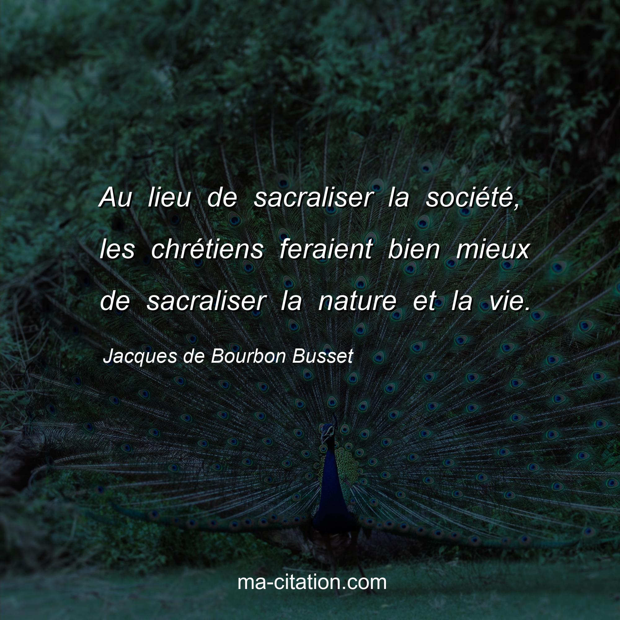Citation sur la vie de Jacques de Bourbon Busset :Au lieu de sacraliser la société, les chrétiens feraient bien mieux de sacraliser la nature et la vie.