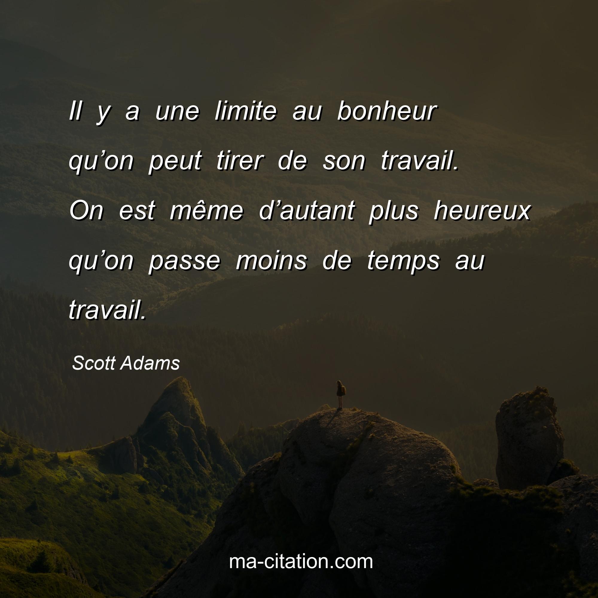 Citation sur la vie de Scott Adams :Il y a une limite au bonheur qu’on peut tirer de son travail. On est même d’autant plus heureux qu’on passe moins de temps au travail.
