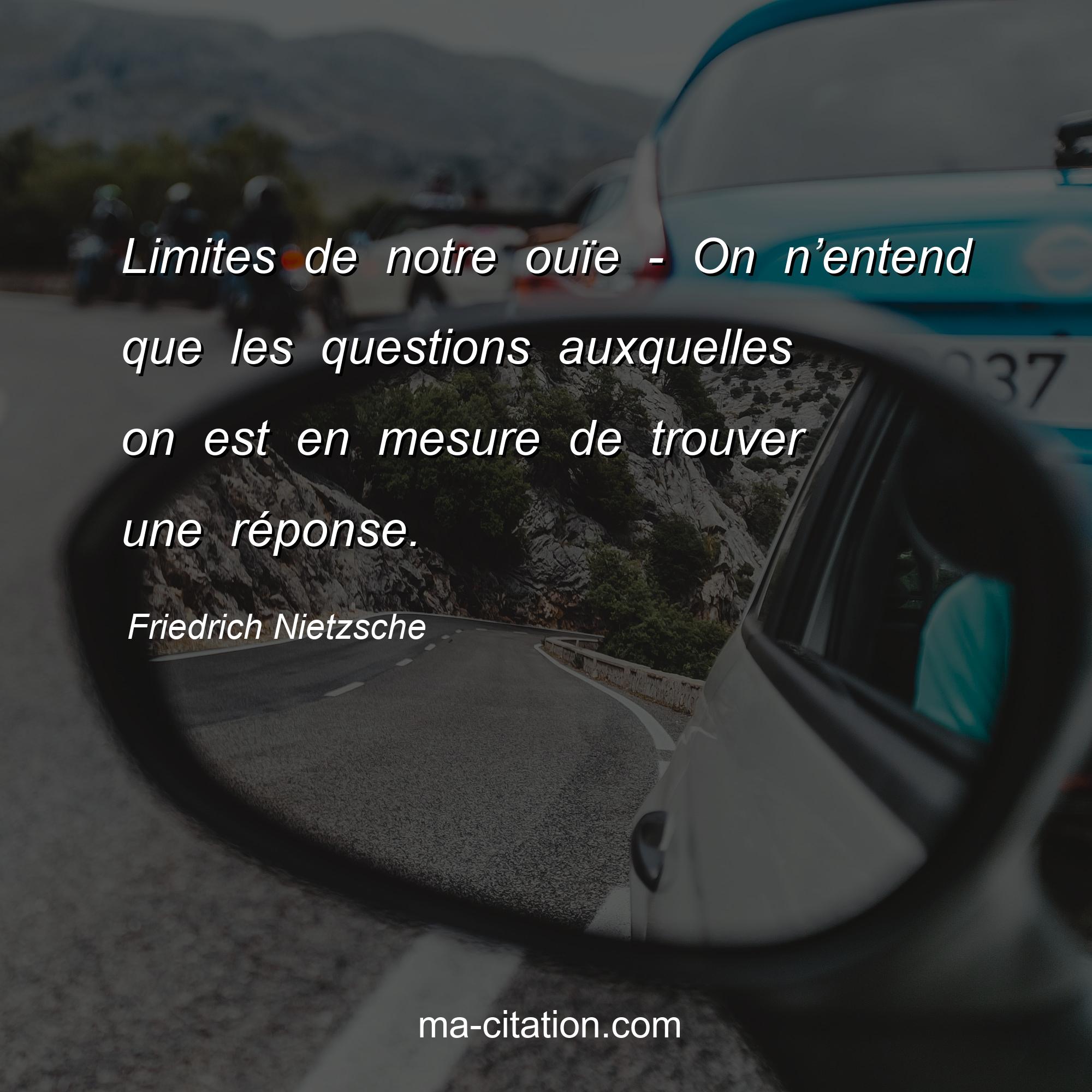 Citation sur la vie de Friedrich Nietzsche :Limites de notre ouïe - On n’entend que les questions auxquelles on est en mesure de trouver une réponse.