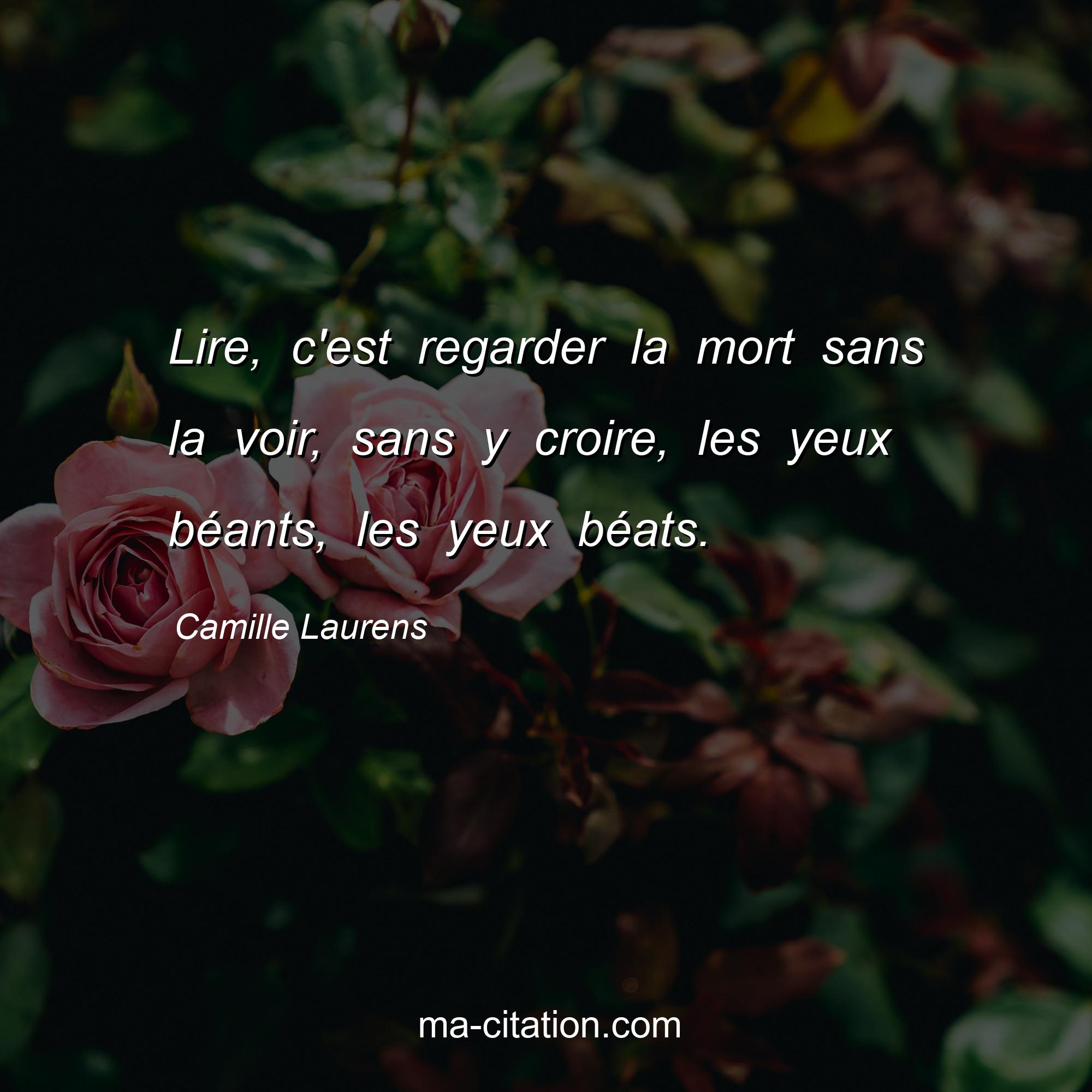 Citation sur la vie de Camille Laurens :Lire, c'est regarder la mort sans la voir, sans y croire, les yeux béants, les yeux béats.