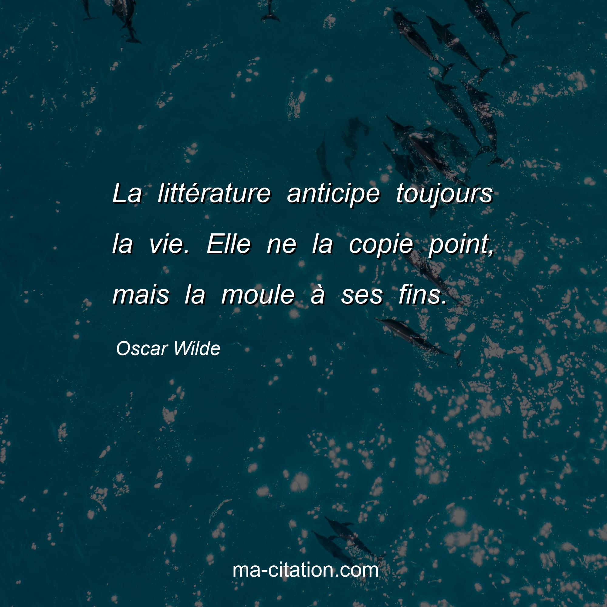 Citation sur la vie d'Oscar Wilde :La littérature anticipe toujours la vie. Elle ne la copie point, mais la moule à ses fins.