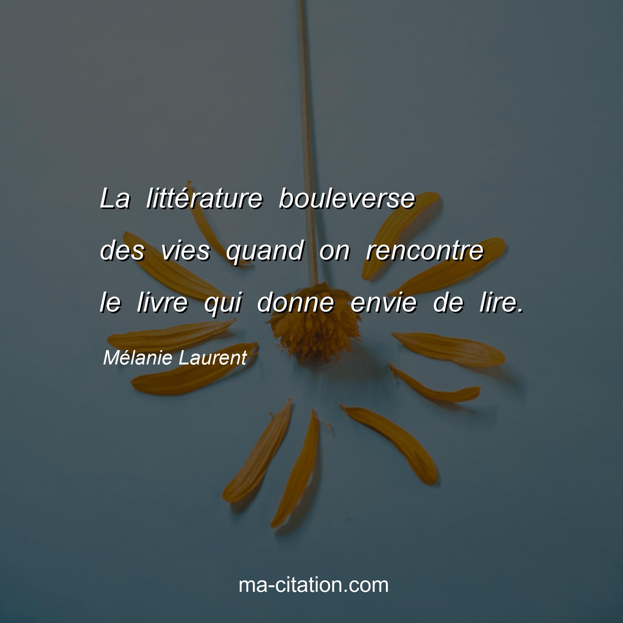 Mélanie Laurent est l'auteur de la citation sur la vie "La littérature bouleverse des vies quand on rencontre le livre qui donne envie de lire.".