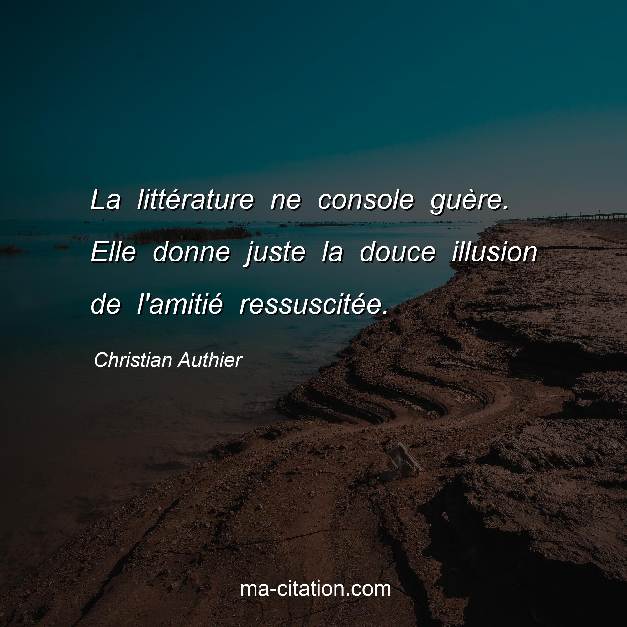 Christian Authier est l'auteur de la citation sur la vie "La littérature ne console guère. Elle donne juste la douce illusion de l'amitié ressuscitée.".