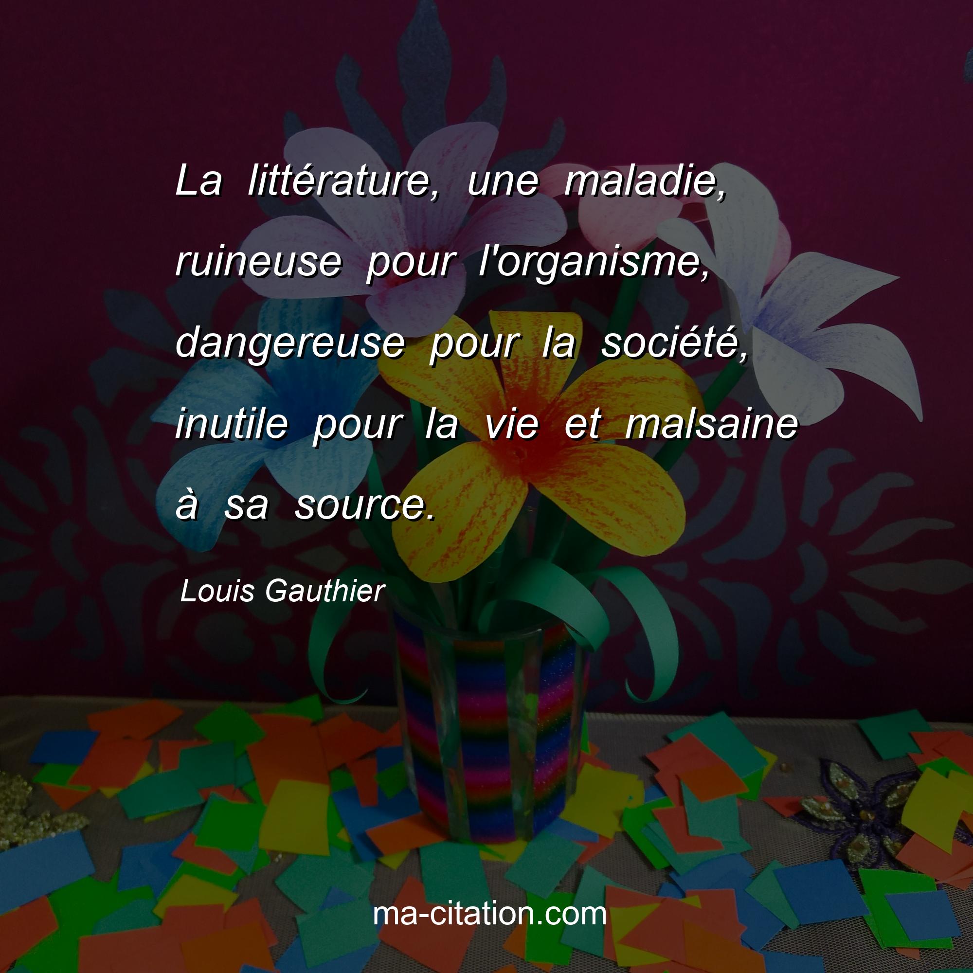 Louis Gauthier est l'auteur de la citation sur la vie "La littérature, une maladie, ruineuse pour l'organisme, dangereuse pour la société, inutile pour la vie et malsaine à sa source.".